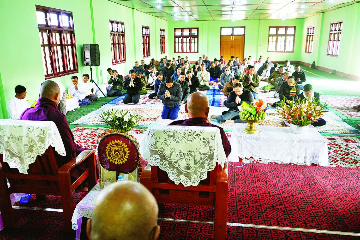 ချင်းပြည်နယ် ဟားခါးမြို့၌ ရောက်ရှိနေသည့် နိုင်ငံတော်စီမံအုပ်ချုပ်ရေးကောင်စီအဖွဲ့ဝင် ဒုတိယဝန်ကြီးချုပ်နှင့် နိုင်ငံတော်ဝန်ကြီးချုပ်ရုံး ပြည်ထောင်စုဝန်ကြီး ဗိုလ်ချုပ်ကြီး တင်အောင်စန်းသည် နိုင်ငံတော်စီမံအုပ်ချုပ်ရေးကောင်စီအဖွဲ့ဝင် နယ်စပ်ရေးရာဝန်ကြီးဌာန ပြည်ထောင်စုဝန်ကြီး ဒုတိယဗိုလ်ချုပ်ကြီး ရာပြည့်၊ နိုင်ငံတော်စီမံအုပ်ချုပ်ရေးကောင်စီအဖွဲ့ဝင် ဒေါက်တာ မှုထန်နှင့် ဒေါက်တာ ဘရွှေ၊ ပြည်ထောင်စုဝန်ကြီးများ၊ ဒုတိယဝန်ကြီးများ၊ ချင်းပြည်နယ်ဝန်ကြီးချုပ်၊ ပြည်နယ်ဥပဒေချုပ်၊ အနောက်မြောက်တိုင်းစစ်ဌာနချုပ် ဒုတိယတိုင်းမှူး၊ ပြည်နယ်အစိုးရအဖွဲ့ဝင်ဝန်ကြီးများ၊ ဌာနဆိုင်ရာတာဝန်ရှိသူများနှင့်အတူ ယနေ့နံနက်ပိုင်းတွင် သာသနာ့ရက္ခိတကျောင်း၌ နယ်စပ်ဒေသဖွံ့ဖြိုးရေးရန်ပုံငွေဖြင့် ဆောက်လုပ်သည့် ဓမ္မာရုံအသစ်ဆောက်လုပ်လှူဒါန်းခြင်းအခမ်းအနားသို့ တက်ရောက်ကြသည်။