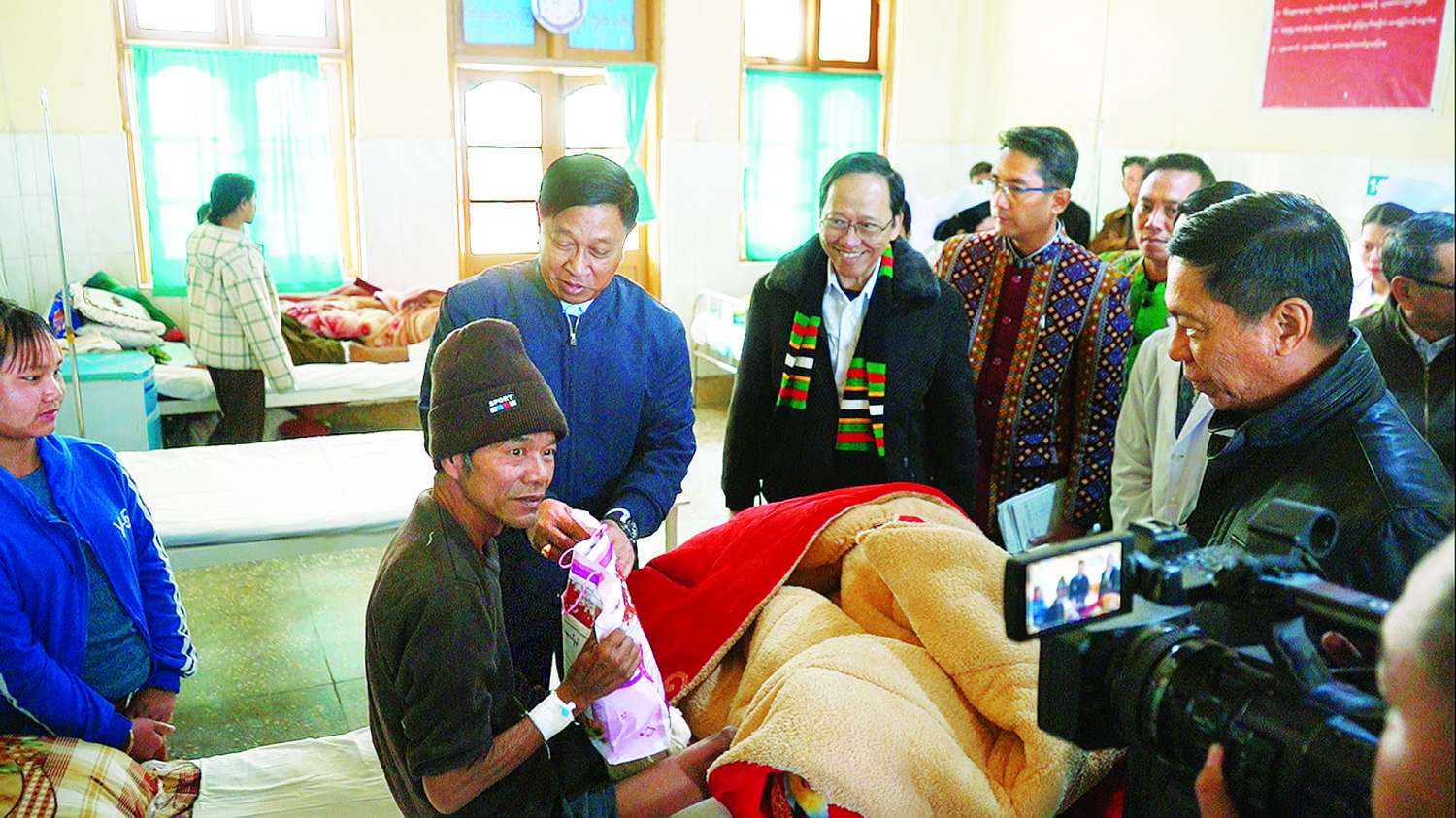 ထို့နောက် ဒုတိယဝန်ကြီးချုပ်နှင့် ပြည်ထောင်စုဝန်ကြီးနှင့်အဖွဲ့သည် ဟားခါးပြည်သူ့ဆေးရုံကြီး သို့ရောက်ရှိပြီး ဆေးရုံတက်ရောက်ကုသလျက်ရှိသော လူနာများအား ရင်းရင်းနှီးနှီးတွေ့ဆုံ အားပေးစကားပြောကြားပြီး ထောက်ပံ့ပစ္စည်းများ ပေးအပ်သည်။