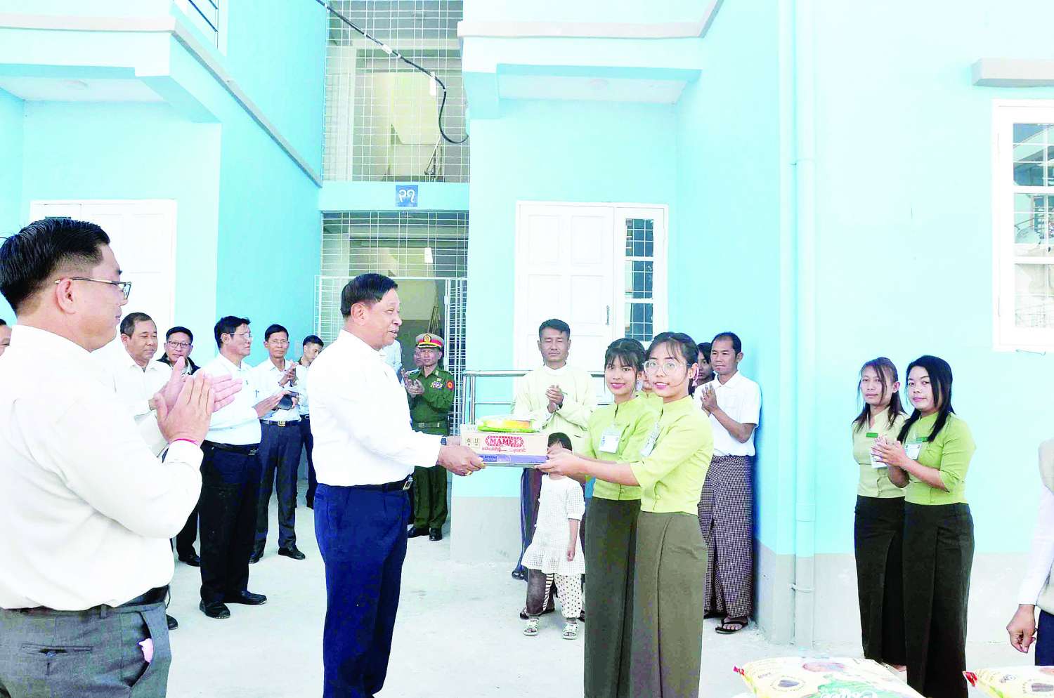 နိုင်ငံတော်စီမံအုပ်ချုပ်ရေးကောင်စီအဖွဲ့ဝင် ဒုတိယဝန်ကြီးချုပ်နှင့် ပြည်ထောင်စုဝန်ကြီး ဗိုလ်ချုပ်ကြီးတင်အောင်စန်း အကြမ်းဖက်မှုဖြစ်စဉ်များကြောင့် ပျက်စီးသွားသောနေအိမ်များနှင့် သဘာဝဘေးကြောင့် ယာယီနေရပ်စွန့်ခွာပြည်သူများအား ချီးမြှင့်ငွေ၊ ဆန်၊ ဆီ၊ ပဲ၊ ဆား ပေးအပ်