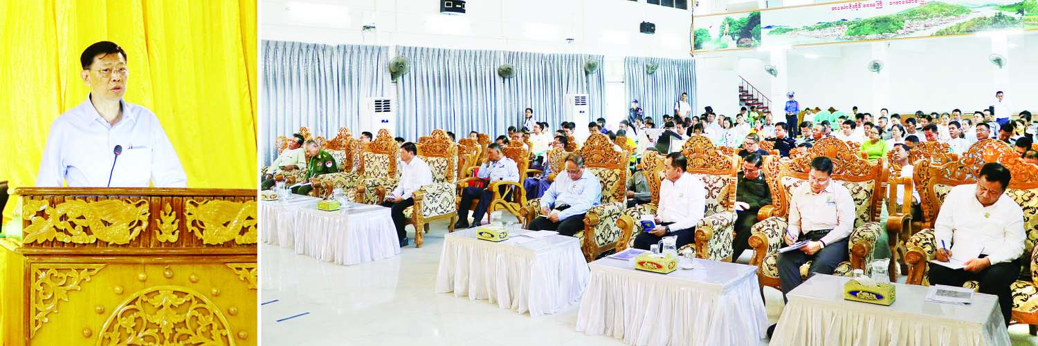 ထို့နောက် ပြည်ထောင်စုဝန်ကြီးနှင့်အတူ လိုက်ပါလာသည့် တာဝန်ရှိသူများသည် ကော့သောင်းမြို့ အထွေထွေအုပ်ချုပ်ရေးဦးစီးဌာန မဉ္ဇူသကခန်းမတွင် ကော့သောင်းမြို့၌ တာဝန်ထမ်းဆောင်လျက်ရှိသော ဝန်ကြီးဌာနအောက်ရှိ ဌာနအဖွဲ့အစည်းများမှ ဝန်ထမ်းများနှင့်တွေ့ဆုံ၍ အမှာစကားပြောကြားပြီး ပြည်ထောင်စုဝန်ကြီးက စားသောက်ဖွယ်ရာများ ပေးအပ်သည်။