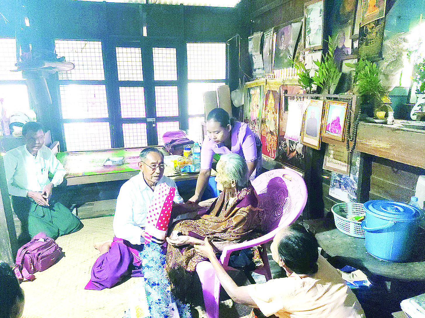 နိုင်ငံတော်စီမံအုပ်ချုပ်ရေးကောင်စီအဖွဲ့ဝင် မန်းငြိမ်းမောင် အသက်(၁၀၉)နှစ်ရှိ အဘွားအား အလှူပစ္စည်းများ ပေးအပ်