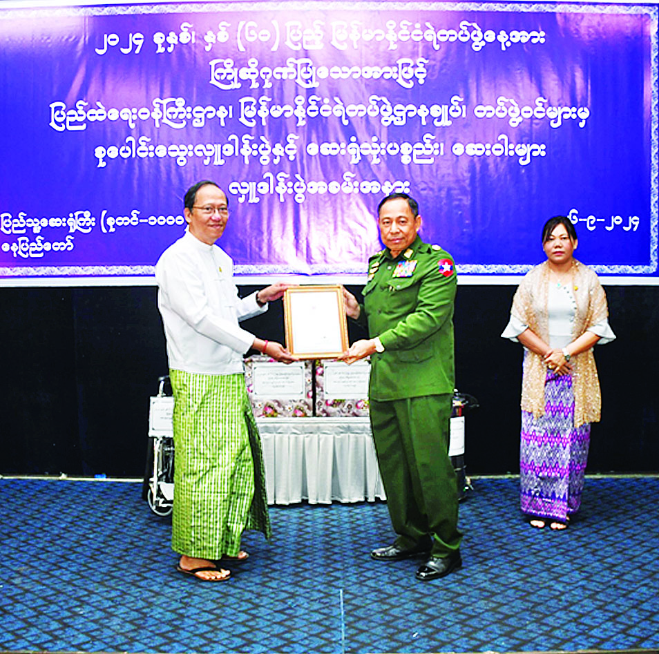 နိုင်ငံတော်စီမံအုပ်ချုပ်ရေးကောင်စီအဖွဲ့ဝင် ပြည်ထောင်စုဝန်ကြီး ဒုတိယဗိုလ်ချုပ်ကြီးရာပြည့် နှစ်(၆၀)ပြည့် မြန်မာနိုင်ငံရဲတပ်ဖွဲ့နေ့ကို ကြိုဆိုဂုဏ်ပြုသောအားဖြင့် စုပေါင်းသွေးလှူဒါန်းပွဲနှင့် ဆေးရုံသုံးပစ္စည်းများနှင့် ဆေးဝါးများပေးအပ်လှူဒါန်းပွဲသို့ တက်ရောက်