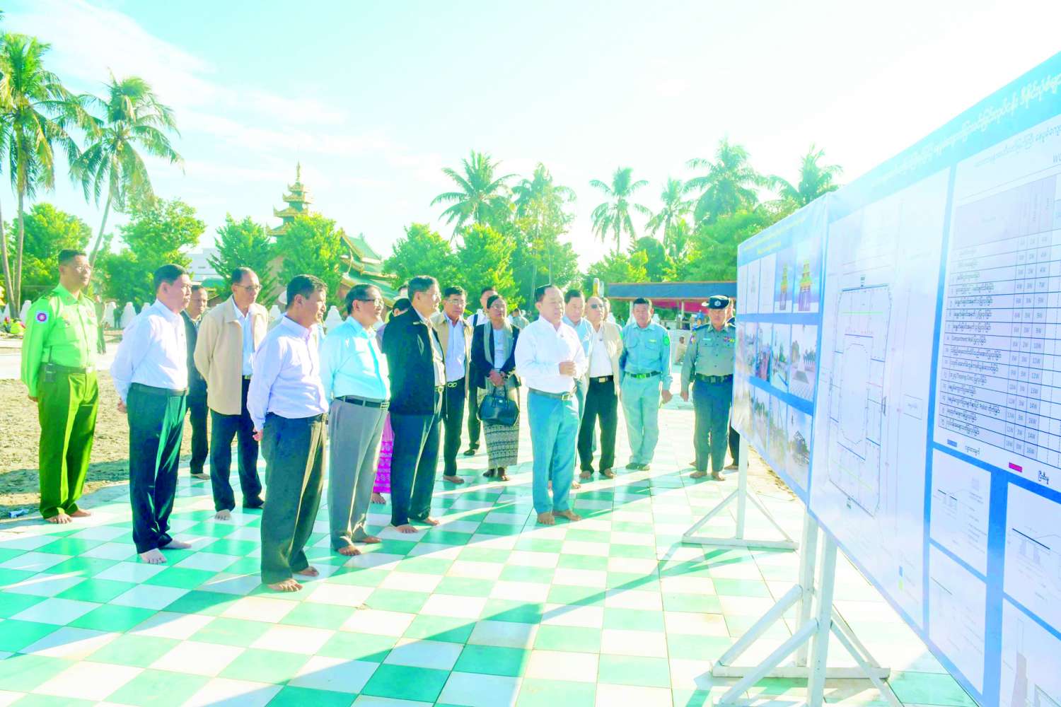 နိုင်ငံတော်စီမံအုပ်ချုပ်ရေးကောင်စီအဖွဲ့ဝင် ဒေါက်တာမှုထန်၊ ဒေါက်တာဘရွှေနှင့် ခွန်စံလွင်တို့သည် ပြည်ထောင်စုဝန်ကြီးများဖြစ်ကြသည့် ဒုတိယဗိုလ်ချုပ်ကြီးထွန်းထွန်းနောင် နှင့် Jeng Phang နော်တောင်၊ ရခိုင်ပြည်နယ်ဝန်ကြီးချုပ်ဦးထိန်လင်း၊ နိုင်ငံတော်စီမံအုပ်ချုပ်ရေးကောင်စီ ဗဟိုအကြံပေးအဖွဲ့ဝင် ဒေါ်အေးနုစိန်၊ ဒုတိယဝန်ကြီး ဒေါ်နုမြဇံနှင့် ဦးဇော်အေးမောင်၊ ပြည်နယ်အစိုးရအဖွဲ့ဝင်များနှင့်အတူ ယနေ့နံနက်ပိုင်းက စစ်တွေမြို့ လောကာနန္ဒာစေတီတော်မြတ်ကြီးနှင့် ရှေးဟောင်းသမိုင်းဝင် စကြာမုနိဗုဒ္ဓရုပ်ပွားတော်အား ဖူးမြော်ပြီး အဆင့်မြင့်ပညာနှင့်အခြေခံပညာတို့မှ ဆရာ ဆရာမများနှင့် တွေ့ဆုံသည်။