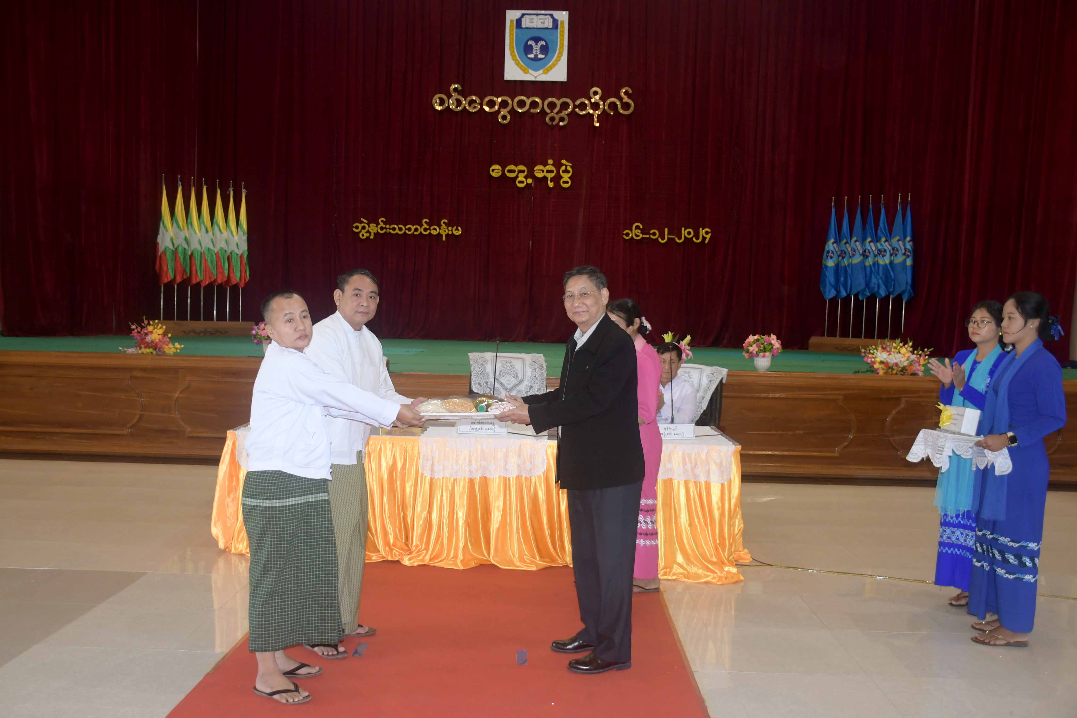 ဆက်လက်၍ နိုင်ငံတော်စီမံအုပ်ချုပ်ရေးကောင်စီအဖွဲ့ဝင် ဒေါက်တာဘရွှေက ဆရာဆရာမများအတွက် ချီးမြှင့်ငွေနှင့် အခြေခံစားကုန်ပစ္စည်းများကို ပေးအပ်ချီးမြှင့်ပြီး တက္ကသိုလ်အတွင်း မော်တော်ယာဉ်များဖြင့် လှည့်လည်ကြည့်ရှုခဲ့ကြောင်း သိရသည်။