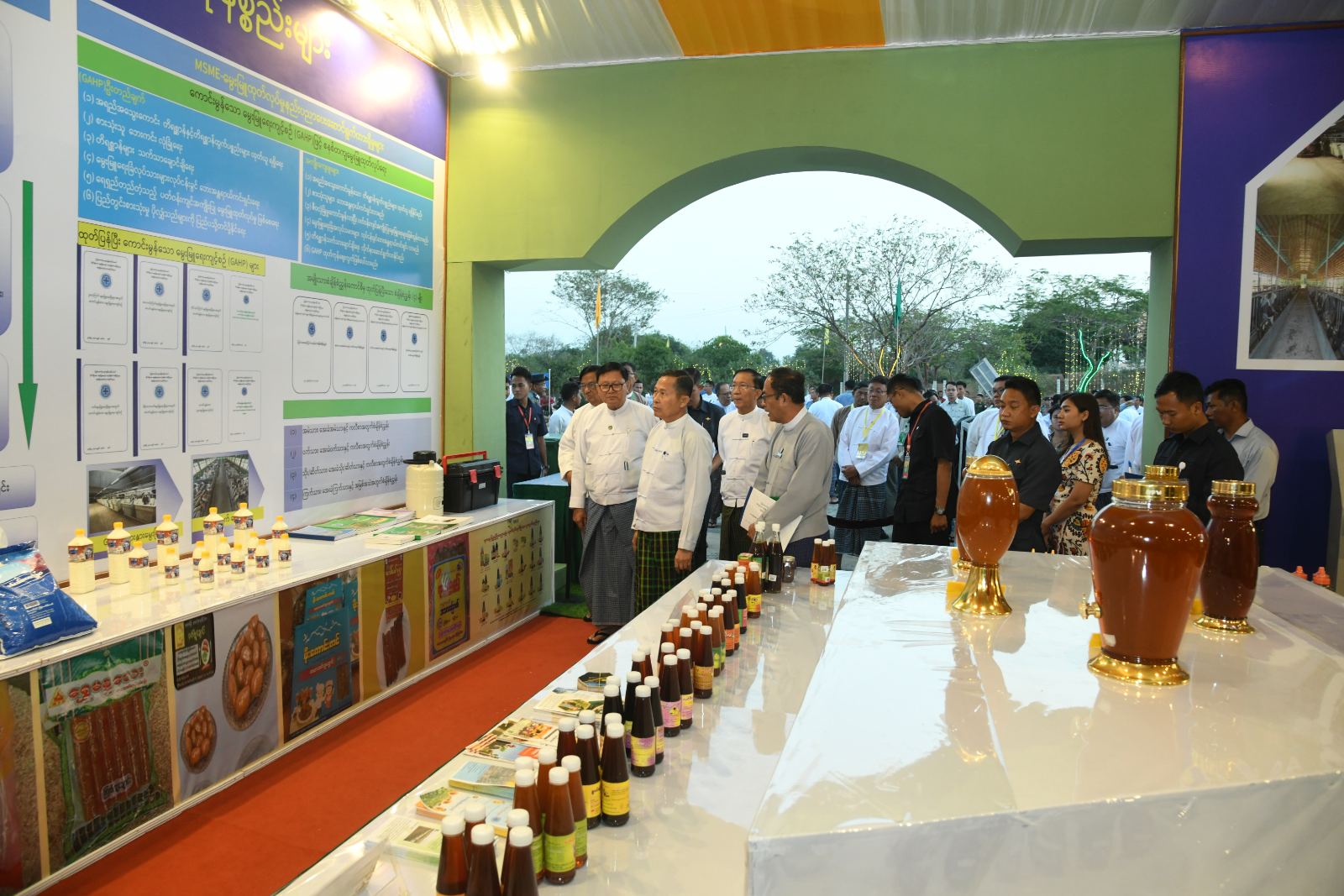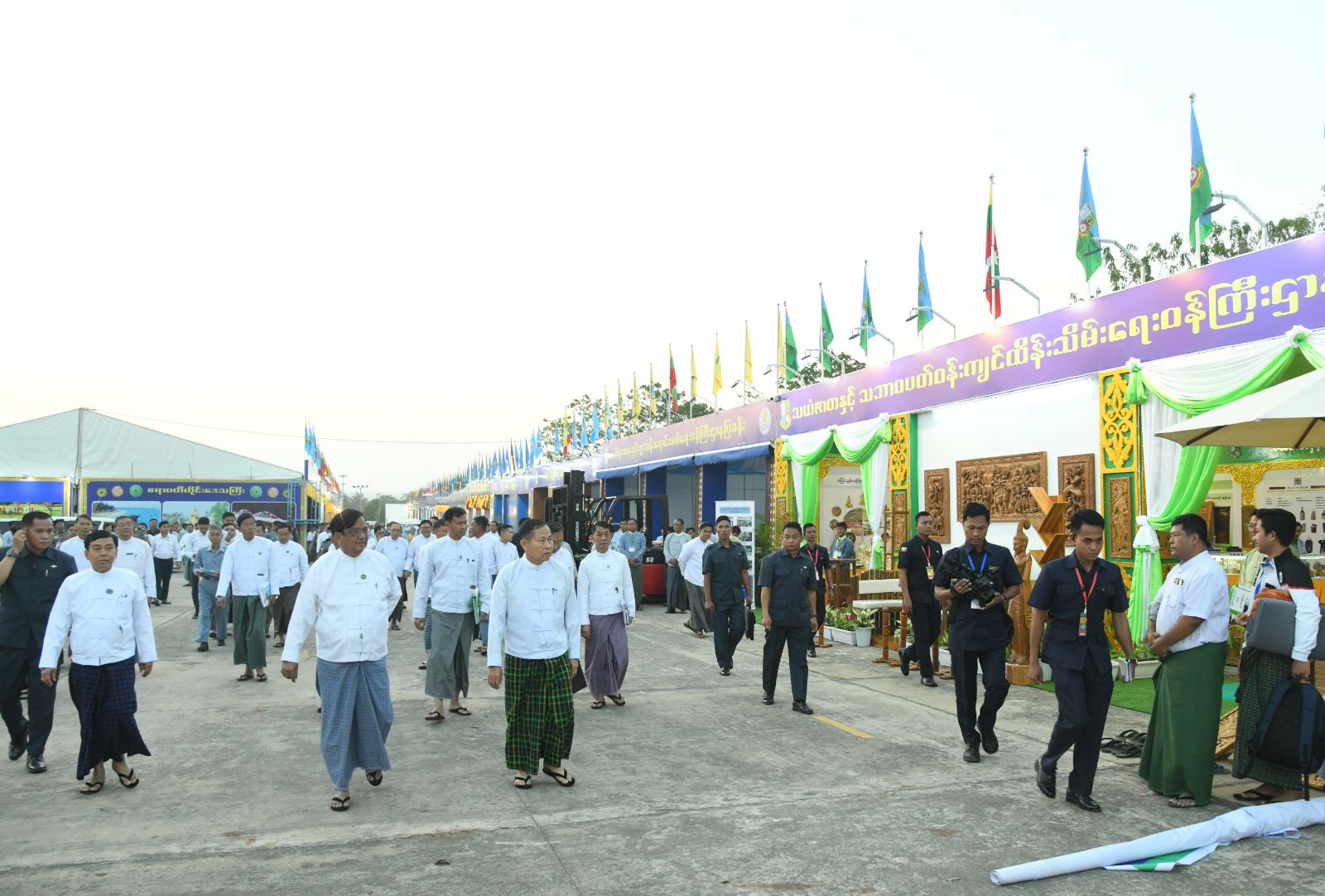 အစည်းအဝေးအပြီးတွင် လုပ်ငန်းကော်မတီဥက္ကဋ္ဌ နိုင်ငံတော်စီမံအုပ်ချုပ်ရေးကောင်စီ ဒုတိယဥက္ကဋ္ဌ ဒုတိယဝန်ကြီးချုပ် ဒုတိယဗိုလ်ချုပ်မှူးကြီး စိုးဝင်းသည် အဖွဲ့ဝင်များနှင့်အတူ ဝန်ကြီးဌာနပြခန်းများ၊ တိုင်းဒေသကြီး/ပြည်နယ်ပြခန်းများ၊ တိုင်းရင်းသားရိုးရာအစားအစာ ရောင်းချဆိုင်ခန်းများ၊ လုပ်ငန်း/ စီးပွားချိတ်ဆက်မှုများ(B2B)၊ နည်းပညာပြခန်းများ၊ ပြည်ပစက်ပစ္စည်းနှင့် ထုတ်ကုန်ပြခန်းများ၊ အသေးစားစက်မှုလက်မှုလုပ်ငန်းနှင့် ကုန်ထုတ်သမဝါယမပြခန်းများ အပြီးသတ် ဆောင်ရွက်နေမှုနှင့် ပြခန်းအလိုက် ခင်းကျင်းပြသရန် ပြင်ဆင်ဆောင်ရွက်နေမှုများကို လိုက်လံကြည့်ရှု အားပေးခဲ့ကြောင်း သတင်းရရှိသည်။