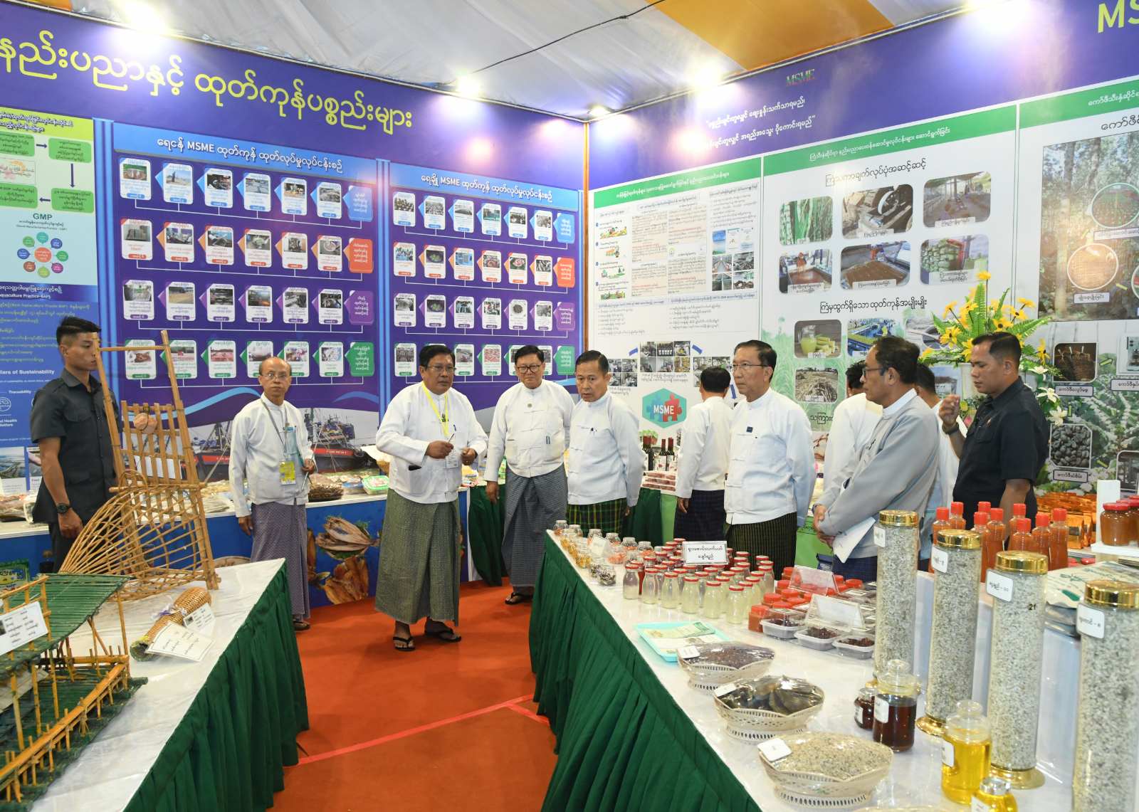 မိမိတို့ MSME ထုတ်ကုန်များကို ပြည်တွင်း ဈေးကွက်၌သာမက ပြည်ပသို့လည်း တင်ပို့နိုင်ရမည်ဖြစ်ပြီး ပြည်ပသို့ တင်ပို့နိုင်ရေးအတွက် ဈေးကွက်လိုအပ်ချက်များ၊ စာရွက်စာတမ်းဆိုင်ရာ လိုအပ်ချက်များ၊ နည်းစနစ်ဆိုင်ရာ လိုအပ်ချက်များကို လုပ်ငန်းရှင်များအနေဖြင့် သိရှိနားလည်မှသာ လုပ်ငန်းများ ပိုမိုအဆင်ပြေနိုင်မည် ဖြစ်ကြောင်း၊ ယခုကဲ့သို့ ပြည်ထောင်စုအဆင့် MSME ထုတ်ကုန်ပြပွဲနှင့်ပြိုင်ပွဲများ ပြုလုပ်ခြင်းမှ ပြည်နယ်နှင့်တိုင်းဒေသကြီး ထုတ်ကုန်များအနေဖြင့် သွင်းကုန် အစားထိုး ပြည်တွင်း ဈေးကွက်အတွင်း ပြည်သူများသုံးစွဲနိုင်မည်ဖြစ်ပြီး ပြည်ပသို့ တင်ပို့နိုင်ရန်အတွက် လိုအပ်သည့် နည်းစနစ်ပိုင်းနှင့် အချက်အလက်များ၊ အထောက်အထားပိုင်းများကို ဝန်ကြီးဌာနများနှင့် မည်သို့ချိတ်ဆက်၍ ဆောင်ရွက်ပေးနိုင်မည်ကို လုပ်ငန်းရှင်များအားလုံး သိရှိနိုင်ရန် ဖြစ်ကြောင်း ပြောကြားသည်။