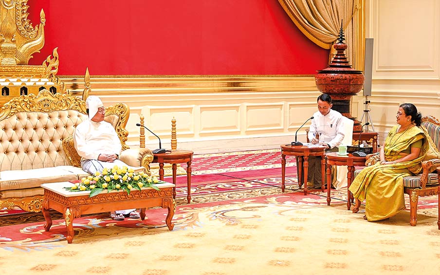 နိုင်ငံတော်စီမံအုပ်ချုပ်ရေးကောင်စီဥက္ကဋ္ဌ နိုင်ငံတော်ဝန်ကြီးချုပ် ဗိုလ်ချုပ်မှူးကြီး မင်းအောင်လှိုင်ထံ မြန်မာနိုင်ငံဆိုင်ရာ သီရိလင်္ကာနိုင်ငံ သံအမတ်ကြီး သံအမတ်ခန့်အပ်လွှာ ပေးအပ်