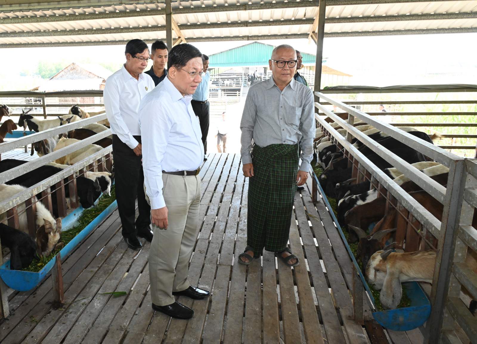 ထို့နောက် နိုင်ငံတော်စီမံအုပ်ချုပ်ရေးကောင်စီဥက္ကဋ္ဌ နိုင်ငံတော်ဝန်ကြီးချုပ်နှင့် အဖွဲ့ဝင်များသည် တွံတေးမွေးမြူရေးဇုန်အတွင်းရှိ ဦးစိုးအောင်၏ ဆိတ်မွေးမြူရေးခြံ၊ ဦးအောင်လင်းဦး ၏ ရွှေဘဲ(အသားတိုးဘဲ) မွေးမြူရေးခြံ၊ ဦးဇာရား၏ ဥစားဘဲ မွေးမြူရေးခြံ၊ ဦးမြင့်နိုင်၏ ငုံးမွေးမြူရေးခြံ၊ ဦးကျော်မင်း၏ နို့စားနွားမွေးမြူရေးခြံနှင့် ဒေါ်လဲ့ရည်ဝင်း၏ ဝက်မွေးမြူရေးခြံတို့အား လှည့်လည်ကြည့်ရှု၍ မွေးမြူရေးခြံအလိုက် တာဝန်ခံများ၏ ရှင်းလင်းတင်ပြမှုများအပေါ် လိုအပ်သည်များ ပြန်လည်မေးမြန်းဆွေးနွေး အကြံပြုပြောကြားခဲ့သည်။