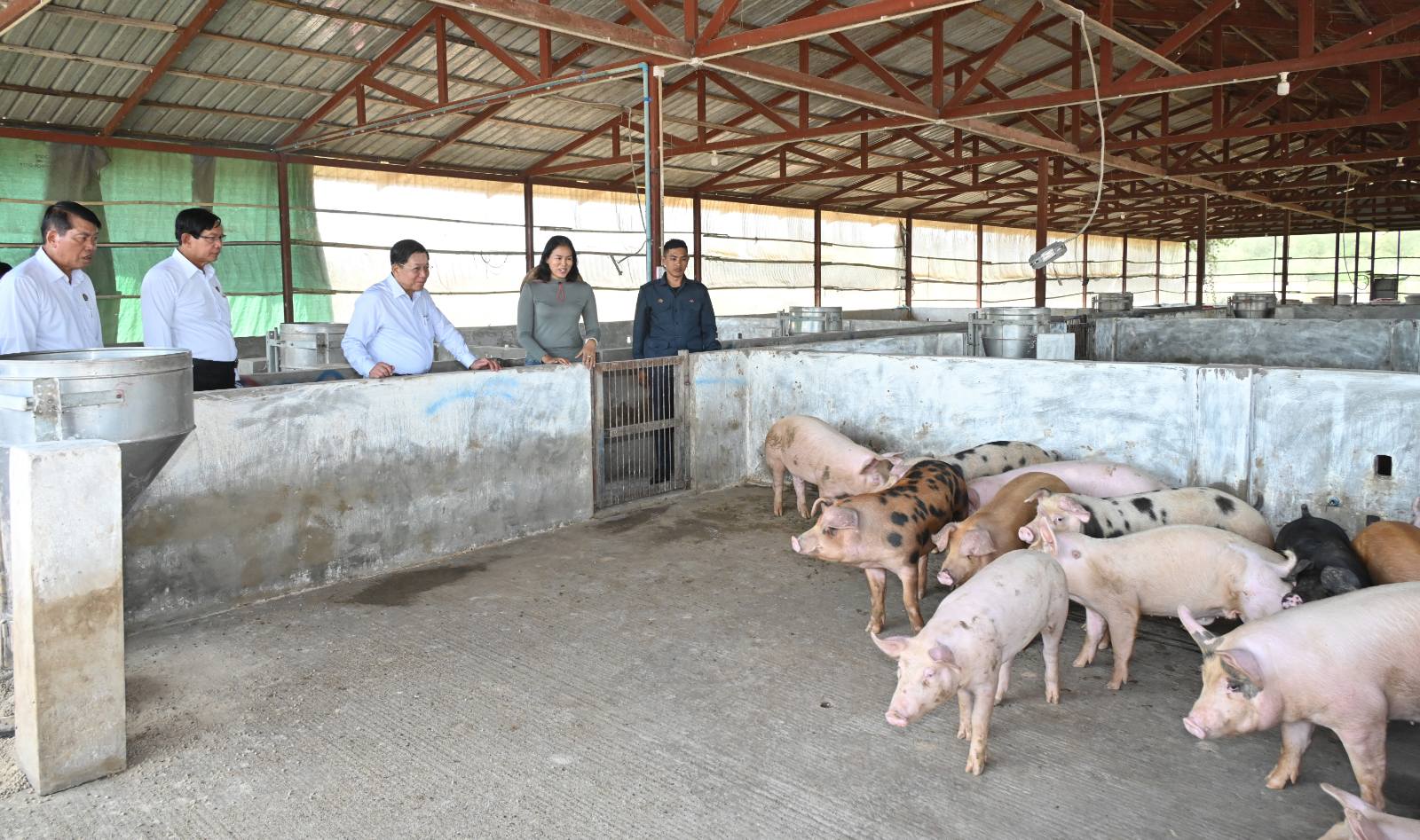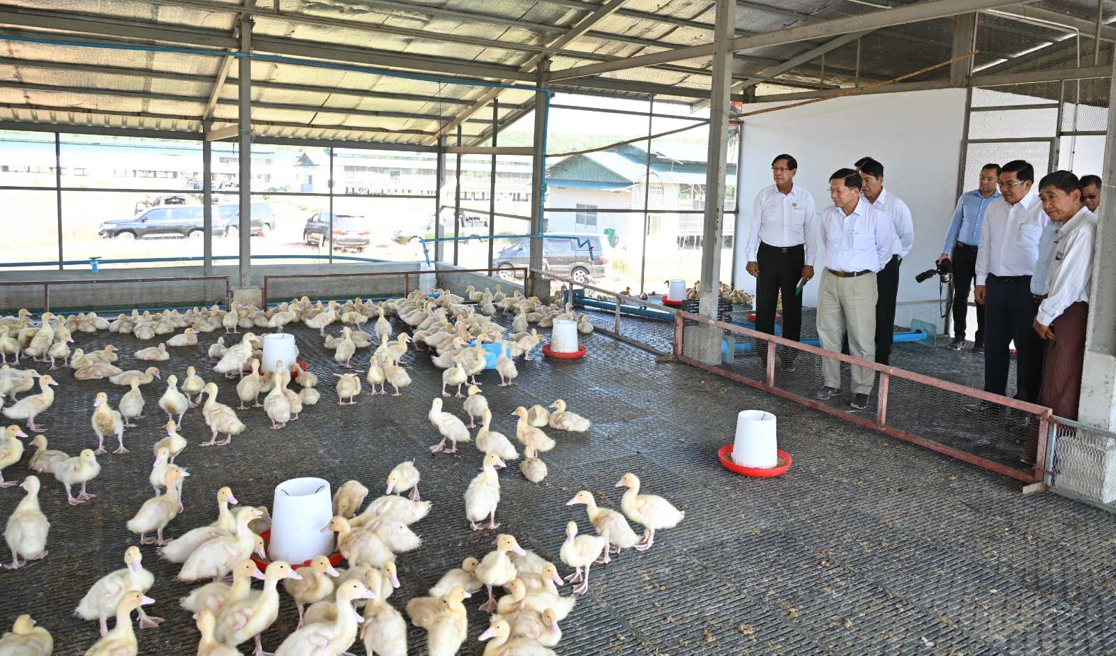 ထို့နောက် နိုင်ငံတော်စီမံအုပ်ချုပ်ရေးကောင်စီဥက္ကဋ္ဌ နိုင်ငံတော်ဝန်ကြီးချုပ်သည် မွေးမြူရေးဇုန် ရှင်းလင်းဆောင်၌ တာဝန်ရှိသူများနှင့်တွေ့ဆုံ၍ ယခုအခါ မွေးမြူရေးဇုန်အတွင်း လှောင်မွေးစနစ်ဖြင့် စတင်မွေးမြူခြင်းဖြစ်ကြောင်း၊ ခေတ်မီမွေးမြူရေးစနစ်သို့ ရောက်ရှိရဦးမည်ဖြစ်သော်လည်း စနစ်တကျမွေးမြူနိုင်သည့်စနစ်သို့ ရောက်ရှိနေပြီဖြစ်ကြောင်း၊ မွေးမြူရေးဇုန် စတင်အကောင်အထည်ဖော်ဆောင်ရွက်သည်မှာ တစ်နှစ်ကျော်ကာလခန့်မျှသာရှိသည်ဖြစ်သော်လည်း “အစကောင်းမှ အနှောင်းသေချာ” ဆိုသည့်အတိုင်း လုပ်ငန်းများ စတင်ဆောင်ရွက်စဉ်ကတည်းကပင် စနစ်တကျဖြင့် ဆောင်ရွက်သွားရန်လိုကြောင်း၊ လှောင်မွေးစနစ်ဖြင့် မွေးမြူခြင်းဖြစ်သဖြင့် အစာ၊ ရေနှင့် အခြားလိုအပ်ချက်များ ပြည့်ဝစွာရရှိစေရေးအတွက် လိုအပ်ချက်များကို ဖြည့်ဆည်းဆောင်ရွက်ပေးသွားမည်ဖြစ်ကြောင်းဖြင့် မှာကြားသည်။
