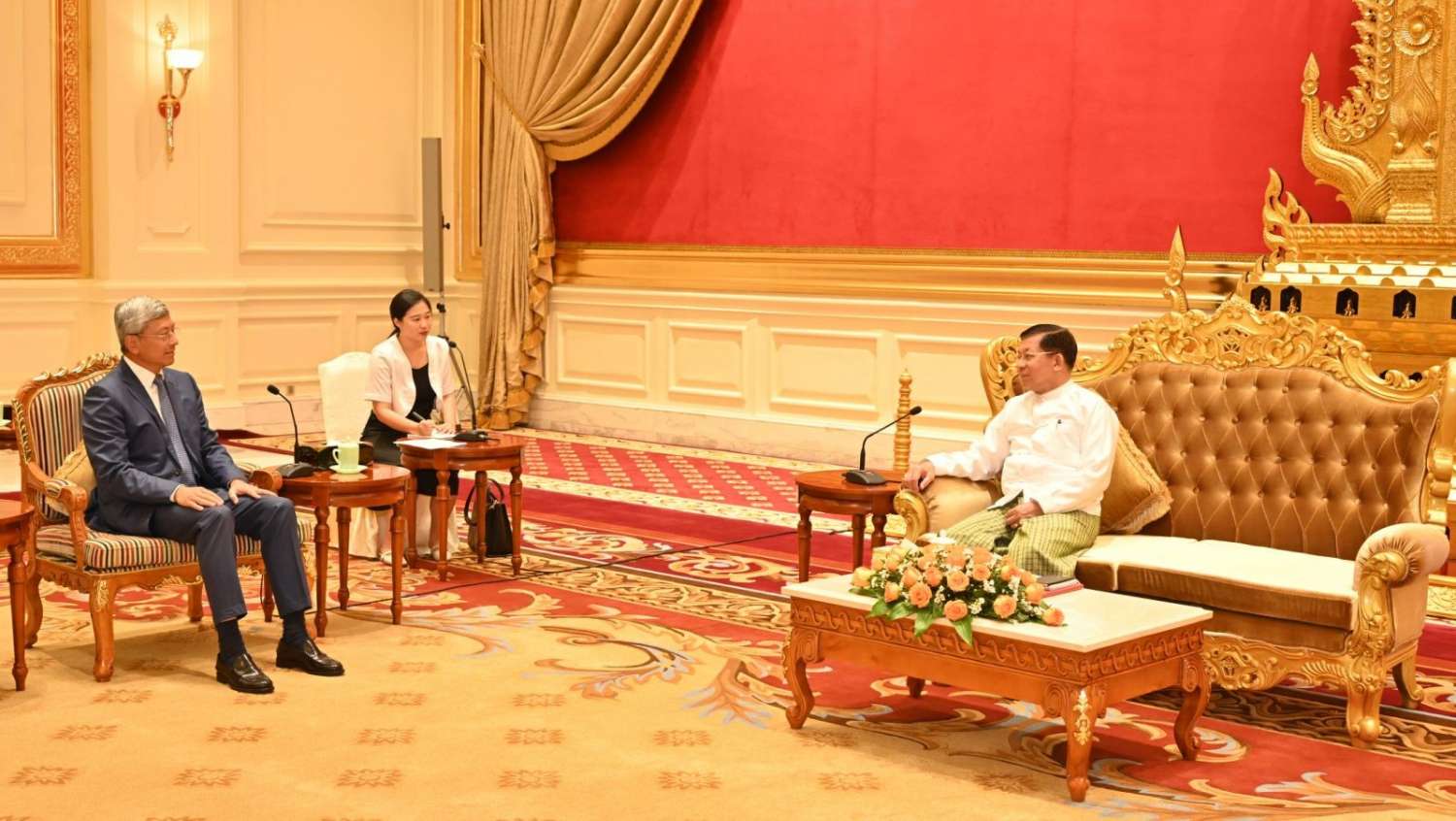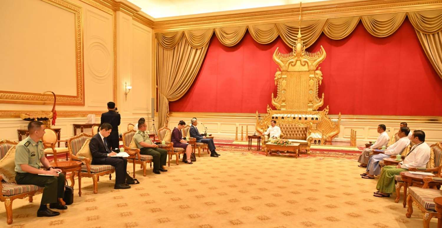 နိုင်ငံတော်စီမံအုပ်ချုပ်ရေးကောင်စီဥက္ကဋ္ဌ နိုင်ငံတော်ဝန်ကြီးချုပ် ဗိုလ်ချုပ်မှူးကြီး မင်းအောင်လှိုင် မြန်မာနိုင်ငံဆိုင်ရာ တရုတ်ပြည်သူ့သမ္မတနိုင်ငံ သံအမတ်ကြီးအား လက်ခံတွေ့ဆုံ