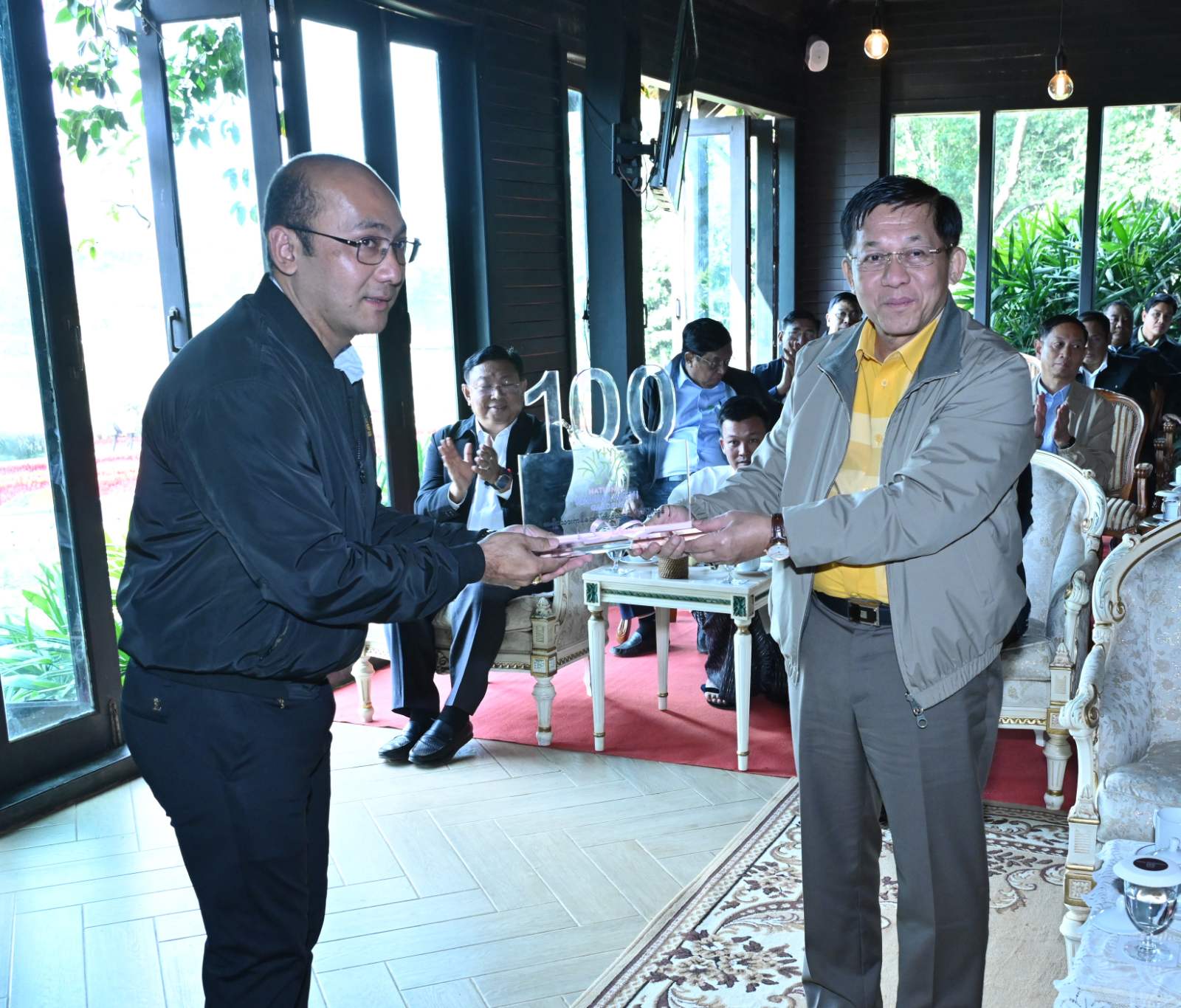 ထို့နောက် နိုင်ငံတော်စီမံအုပ်ချုပ်ရေးကောင်စီဥက္ကဋ္ဌ နိုင်ငံတော်ဝန်ကြီးချုပ်ထံ ဥယျာဉ်တာဝန်ခံ ကုမ္ပဏီမှ အမှုဆောင်အရာရှိချုပ်က အမျိုးသားကန်တော်ကြီးဥယျာဉ် နှစ်(၁၀၀)ပြည့် အထိမ်းအမှတ် လက်ဆောင်အား ဂါရဝပြု ပေးအပ်ခဲ့ကြောင်း သတင်းရရှိသည်။