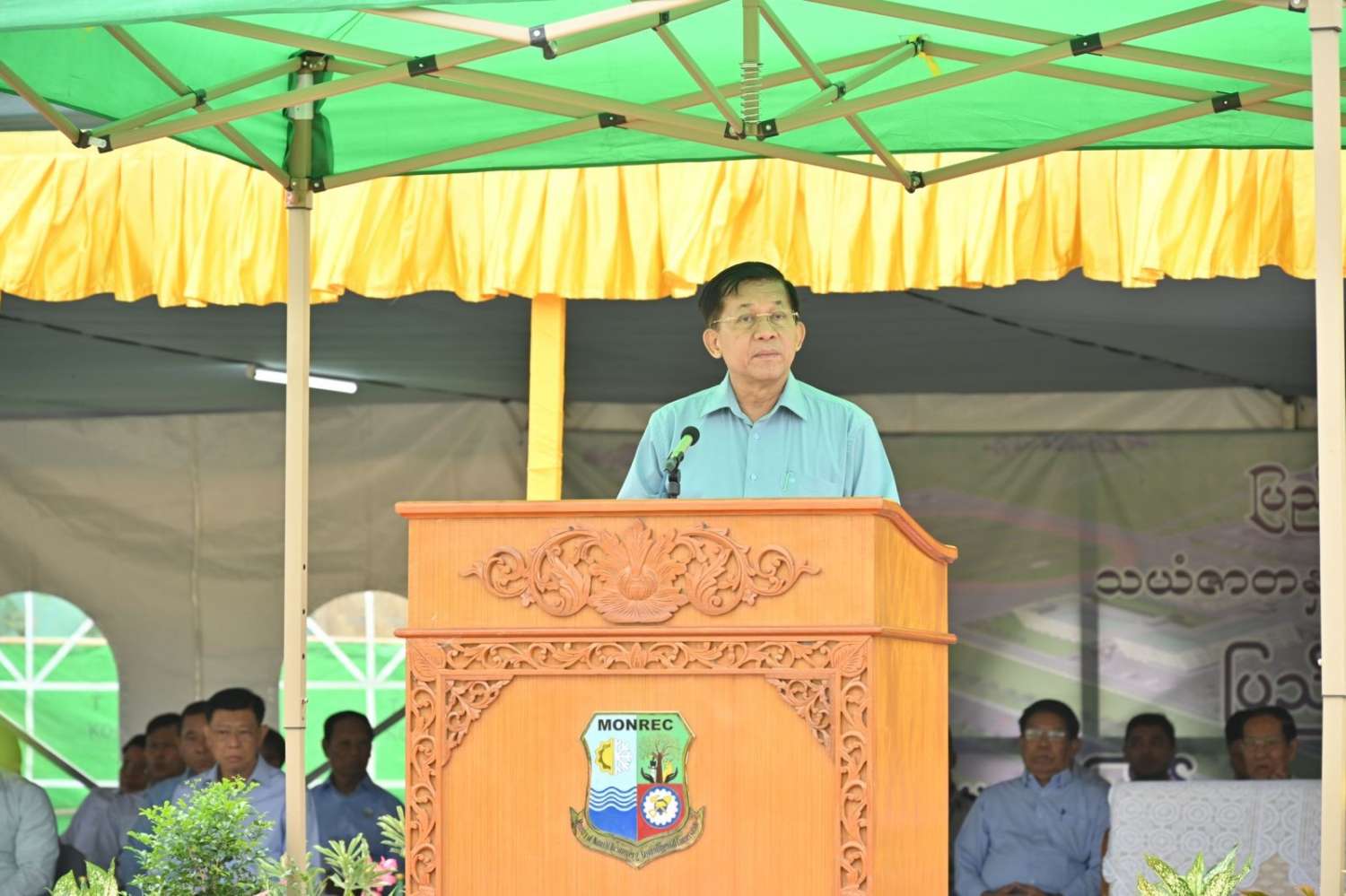 နိုင်ငံတော်စီမံအုပ်ချုပ်ရေးကောင်စီဥက္ကဋ္ဌ နိုင်ငံတော်ဝန်ကြီးချုပ် ဗိုလ်ချုပ်မှူးကြီး မင်းအောင်လှိုင် ပြည်ထောင်စုနယ်မြေ၊ နေပြည်တော် ၂၀၂၄ ခုနှစ်၊ ဒုတိယအကြိမ် မိုးရာသီသစ်ပင်စိုက်ပျိုးပွဲသို့ တက်ရောက်၍ ကံ့ကော်ပျိုးပင်အား ဦးဆောင်စိုက်ပျိုးပေး