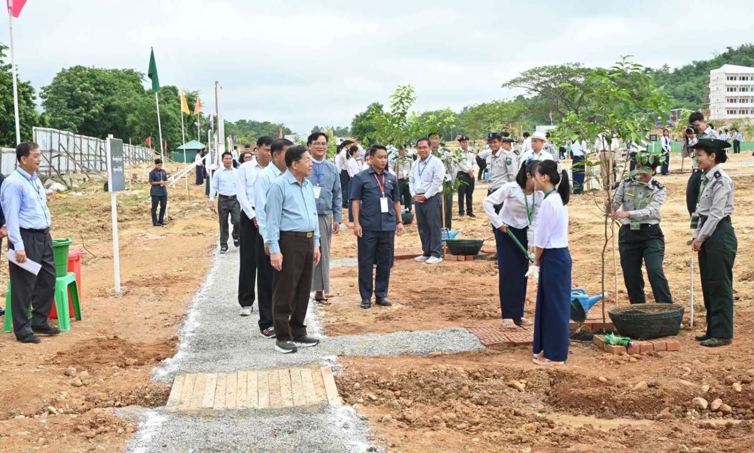 ယင်းနောက်အခမ်းအနားသို့ တက်ရောက်လာကြသည့် ကောင်စီအတွင်းရေးမှူး၊ တွဲဖက်အတွင်းရေးမှူး၊ ကောင်စီအဖွဲ့ဝင်များ၊ ပြည်ထောင်စုအဆင့်ပုဂ္ဂိုလ်မျာနှင့် ပြည်ထောင်စုဝန်ကြီးများ၊ ဖိတ်ကြားထားသည့် ဧည့်သည်တော်ကြီးများနှင့် နေပြည်တော် နည်းပညာတက္ကသိုလ် ပါမောက္ခချုပ်၊ ဒုတိယပါမောက္ခချုပ်၊ ကထိကဆရာ၊ ဆရာမကြီးများ၊ ကျောင်းသား၊ ကျောင်းသူများ၊ ဝန်ကြီးဌာနများမှ ဌာနဆိုင်ရာ အရာထမ်း၊ အမှုထမ်းများနှင့် တာဝန်ရှိသူများသည် ပျိုးပင်များကို တစ်ပြိုင်တည်း စိုက်ပျိုးပေးကြသည်။