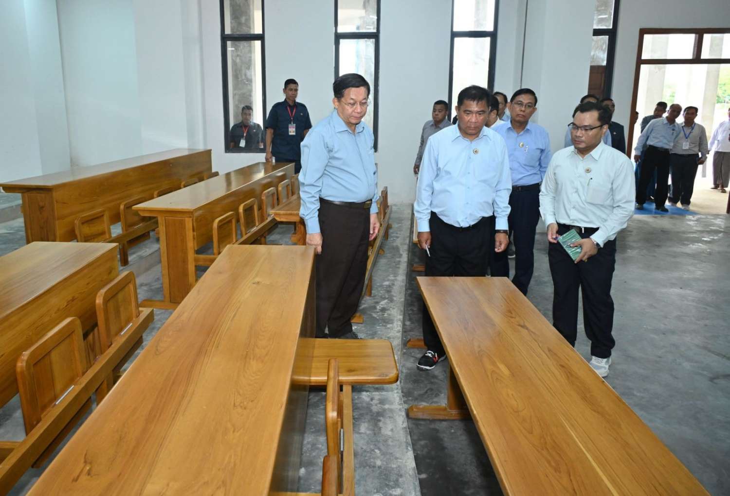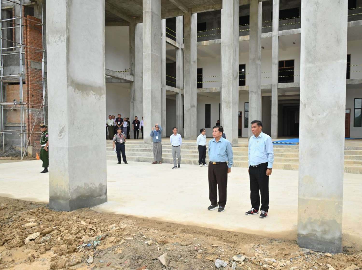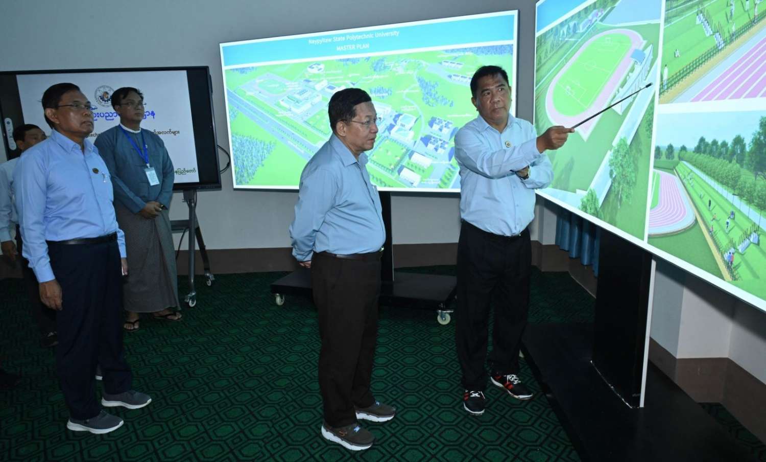 သစ်ပင်စိုက်ပျိုးပွဲအပြီးတွင် နိုင်ငံတော်စီမံအုပ်ချုပ်ရေးကောင်စီဥက္ကဋ္ဌ နိုင်ငံတော်ဝန်ကြီးချုပ်သည် အဖွဲ့ဝင်များလိုက်ပါ၍ Naypyitaw State Polytechnic University ပရိဝုဏ်အတွင်းရှိ ရှုခင်းသာရင်ပြင် (View Point) နေရာဆောင်ရွက်ထားရှိမှုများ၊ သုံးထပ်ပင်မစာသင်ဆောင်အပါအဝင် ဝန်ထမ်းအိမ်ရာများ၊ စာသင်ဆောင်များ၊ ဆရာ၊ ဆရာမနှင့် ကျောင်းသား၊ ကျောင်းသူအဆောင်များ၊ အားကစားကွင်းများ၊ စာကြည့်တိုက်နှင့် အခြားသင်ကြားမှု၊ သင်ယူမှုအထောက်အကူပြု အဆောက်အဦများ ဆောင်ရွက်ပြီးစီးမှုနှင့် ဆက်လက်ဆောင်ရွက်သွားမည့်အခြေအနေများ၊ သုံးထပ်ပင်မစာသင်ဆောင်အတွင်း စာသင်ခန်းများ၊ စုဝေးခန်းမများ တည်ဆောက်ပြီးစီးမှုအခြေအနေများကို လိုက်လံကြည့်ရှုစစ်ဆေးပြီး တာဝန်ရှိသူများ၏ တင်ပြချက်များအပေါ် လိုအပ်သည်များ လမ်းညွှန်မှာကြားခဲ့ကြောင်း သတင်းရရှိသည်။