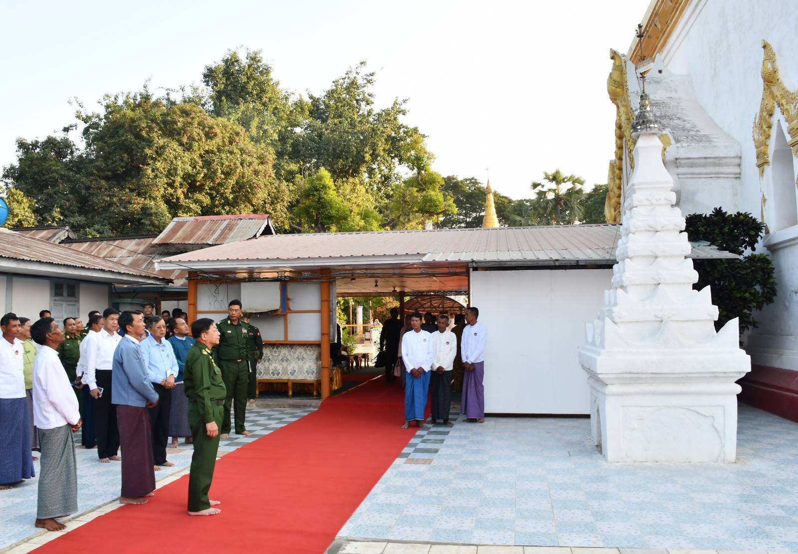 နိုင်ငံတော်စီမံအုပ်ချုပ်ရေးကောင်စီဥက္ကဋ္ဌ နိုင်ငံတော်ဝန်ကြီးချုပ် ဗိုလ်ချုပ်မှူးကြီး မင်းအောင်လှိုင်သည် ယနေ့မွန်းလွဲပိုင်းတွင် ဇနီး ဒေါ်ကြူကြူလှ၊ ကောင်စီတွဲဖက် အတွင်းရေးမှူး ဗိုလ်ချုပ်ကြီး ရဲဝင်းဦး၊ ကောင်စီအဖွဲ့ဝင်များ၊ ပြည်ထောင်စုဝန်ကြီးများနှင့်ဇနီးများ၊ ကာကွယ်ရေးဦးစီးချုပ်ရုံးမှ အဆင့်မြင့်တပ်မတော်အရာရှိကြီးများနှင့်ဇနီးများ၊ မန္တလေးတိုင်းဒေသကြီးဝန်ကြီးချုပ်၊ အလယ်ပိုင်းတိုင်းစစ်ဌာနချုပ် တိုင်းမှူးနှင့် တာဝန်ရှိသူများ လိုက်ပါ၍ မန္တလေးတိုင်းဒေသကြီး အင်းဝမြို့ဟောင်းရှိ လောကသရဖူဘုရားကြီးနှင့် မောင်အိုအုတ်လမ်း ထိန်းသိမ်းထားရှိမှုအခြေအနေများကို သွားရောက်ကြည့်ရှုစစ်ဆေးသည်။
