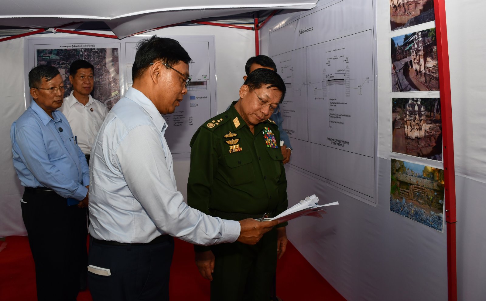 နိုင်ငံတော်စီမံအုပ်ချုပ်ရေးကောင်စီဥက္ကဋ္ဌ နိုင်ငံတော်ဝန်ကြီးချုပ် ဗိုလ်ချုပ်မှူးကြီး မင်းအောင်လှိုင် မန္တလေးတိုင်းဒေသကြီး အင်းဝမြို့ဟောင်းရှိ လောကသရဖူဘုရားကြီးနှင့် မောင်အိုအုတ်လမ်း ထိန်းသိမ်းထားရှိမှု သွားရောက်ကြည့်ရှုစစ်ဆေး