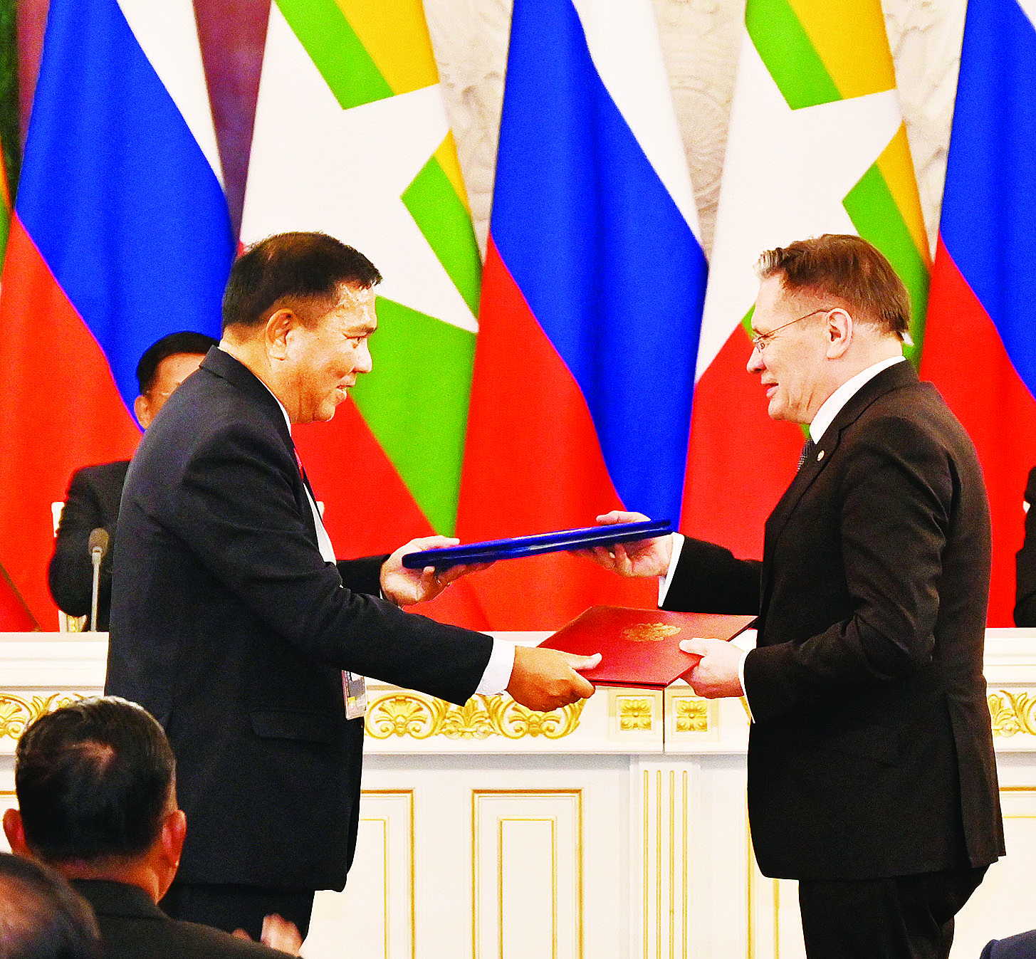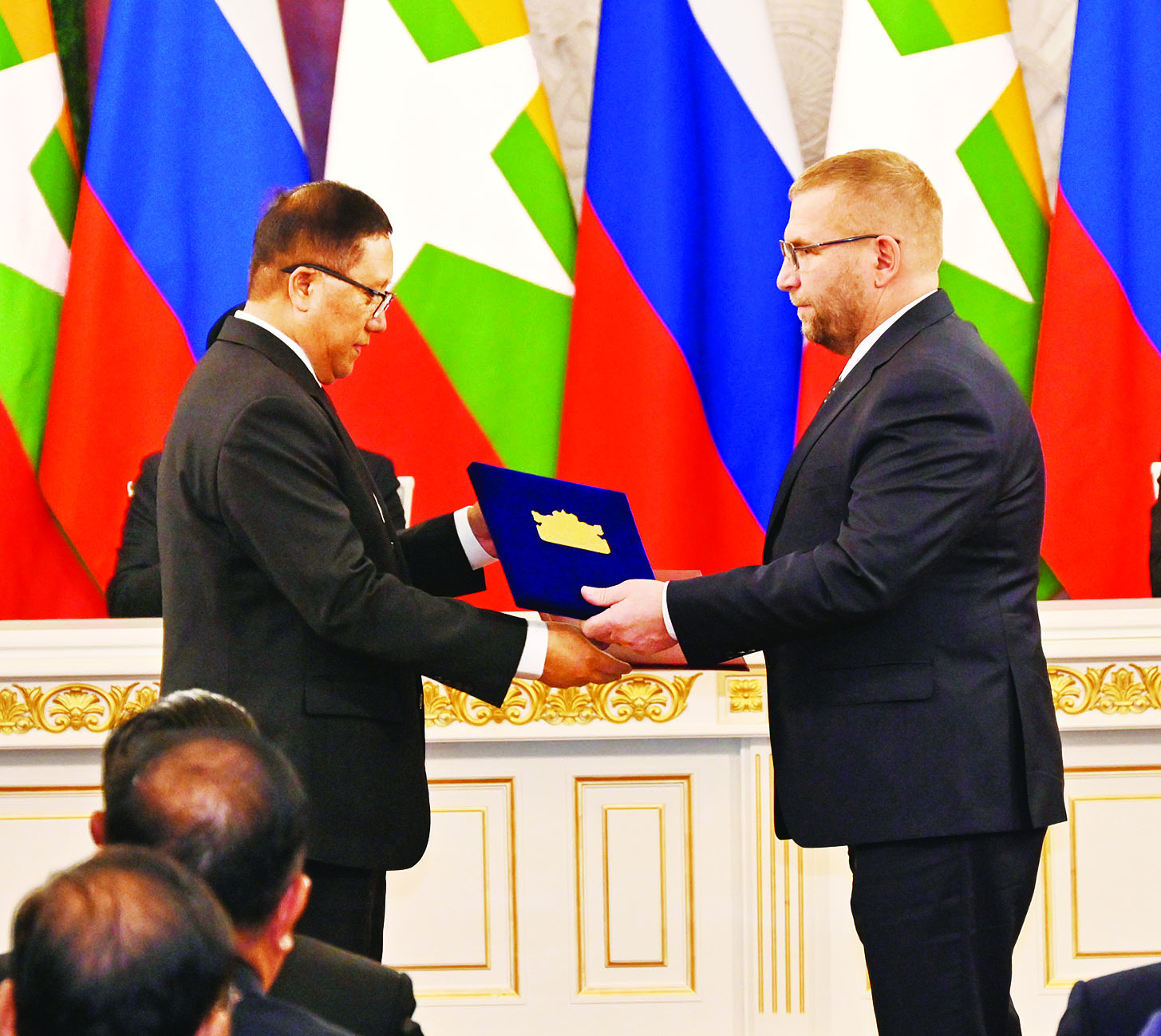 ယင်းနောက် နှစ်နိုင်ငံအစိုးရ နှစ်ရပ်အကြား သဘောတူညီချက်များနှင့် နားလည်မှုစာချွန်လွှာများ လက်မှတ်ရေးထိုးလဲလှယ်ခြင်း အခမ်းအနားကို ဆက်လက်ကျင်းပပြုလုပ်ရာ နှစ်နိုင်ငံအကြား ပညာရေးအရည်အချင်း သတ်မှတ်ချက်နှင့် ပညာရပ်ဆိုင်ရာ ဘွဲ့၊ ဒီဂရီများ အပြန်အလှန်အသိအမှတ်ပြုရေးဆိုင်ရာ သဘောတူစာချုပ်၊ အကောက်အခွန်ဆိုင်ရာ ကိစ္စရပ်များဆိုင်ရာ သဘောတူညီချက်များ၊ ကျန်းမာရေးဆိုင်ရာ နားလည်မှုစာချွန်လွှာများ၊ ယဉ်ကျေးမှုနှင့် အားကဏ္ဍတွင် ပူးပေါင်းဆောင်ရွက်ခြင်း စာချွန်လွှာများ၊ အဏုမြူစွမ်းအင်ကို ငြိမ်းချမ်းစွာအသုံးပြုရာတွင် နျူကလီးယားနှင့် ဓာတ်ရောင်ခြည် ဘေးအန္တရာယ်ကင်းရှင်းရေး စည်းမျဉ်းဥပဒေနယ်ပယ်၌ ပူးပေါင်းဆောင်ရွက်ရေး နားလည်မှုစာချွန်လွှာများ၊ ဘူမိဗေဒလေ့လာရေးနှင့် ဓာတ်သတ္တုရှာဖွေရေးဆိုင်ရာ စီးပွားရေးနှင့်နည်းပညာ ပူးပေါင်းဆောင်ရွက်ရေး နားလည်မှုစာချွန်လွှာများ၊ ငြိမ်းချမ်းသော ရည်ရွယ်ချက်ဖြင့် ပြင်ပအာကာသ စူးစမ်းလေ့လာရေးနှင့် အသုံးပြုမှုနယ်ပယ်တွင် ပူးပေါင်းဆောင်ရွက်ရေး နားလည်မှုစာချွန်လွှာနှင့် နှစ်နိုင်ငံအကြား ရင်းနှီးမြှုပ်နှံမှုများ မြှင့်တင်ရေးနှင့် အကာအကွယ်ပေးရေးဆိုင်ရာ သဘောတူညီချက်စာချုပ် (မူကြမ်း) အပေါ် ဆွေးနွေးညှိနှိုင်းမှု အောင်မြင်စွာ ပြီးမြောက်ခြင်းနှင့်စပ်လျဉ်း၍ ပူးတွဲကြေညာချက်တို့အား ရုရှားဖက်ဒရေးရှင်း နိုင်ငံဆိုင်ရာ မြန်မာနိုင်ငံသံအမတ်ကြီးနှင့် သက်ဆိုင်ရာ ပြည်ထောင်စုဝန်ကြီးများက ရုရှားဖက်ဒရေးရှင်းနိုင်ငံဘက်မှ သက်ဆိုင်ရာဝန်ကြီးများ၊ တာဝန်ရှိသူများနှင့် နိုင်ငံတော်စီမံအုပ်ချုပ်ရေးကောင်စီဥက္ကဋ္ဌ နိုင်ငံတော်ဝန်ကြီးချုပ်နှင့် ရုရှားဖက်ဒရေးရှင်းနိုင်ငံသမ္မတတို့ရှေ့မှောက်၌ အသီးသီးလက်မှတ်ရေးထိုးလဲလှယ်ခဲ့ကြသည်။
