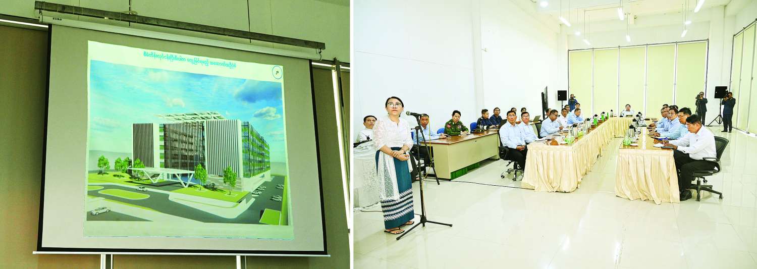 ထို့နောက် တက္ကသိုလ် ပင်မသုံးထပ်ဆောင်ခန်းမ၌ ပါမောက္ခချုပ်က နိုင်ငံတော်စီမံအုပ်ချုပ်ရေးကောင်စီဥက္ကဋ္ဌ နိုင်ငံတော်ဝန်ကြီးချုပ် ၂၀၂၄ ခုနှစ်အတွင်း လာရောက်စစ်ဆေးစဉ် လမ်းညွှန်မှာကြားချက်များအား ဆောင်ရွက်ပြီးစီးမှု၊ တက္ကသိုလ်အတွင်း လိုအပ်လျက်ရှိသည့် အဆောက်အအုံများနှင့်လမ်းများ ထပ်မံဖြည့်တင်းတည်ဆောက်နိုင်ရေး လျာထားဆောင်ရွက်လျက်ရှိမှု၊ တက္ကသိုလ်နယ်နိမိတ်လိုင်း စနစ်တကျရေးဆွဲသတ်မှတ်ပြီးစီးမှု၊ Recreation Center တည်ဆောက်ရန် Master Plan ၌ ထည့်သွင်းရေးဆွဲထားရှိမှု၊ ကျောင်းပတ်ဝန်းကျင် သာယာလှပရေး၊ ဥပဓိရုပ်ကောင်းမွန်ရေးဆောင်ရွက်ထားရှိမှု အခြေအနေများကို ရှင်းလင်းတင်ပြသည်။