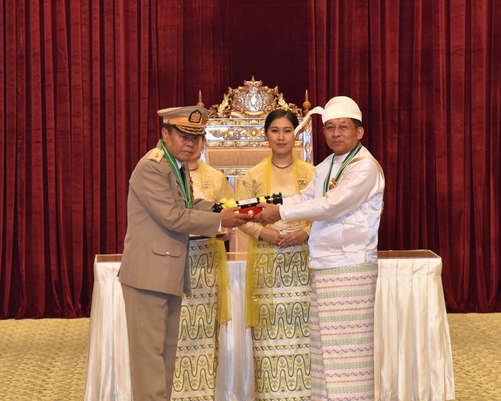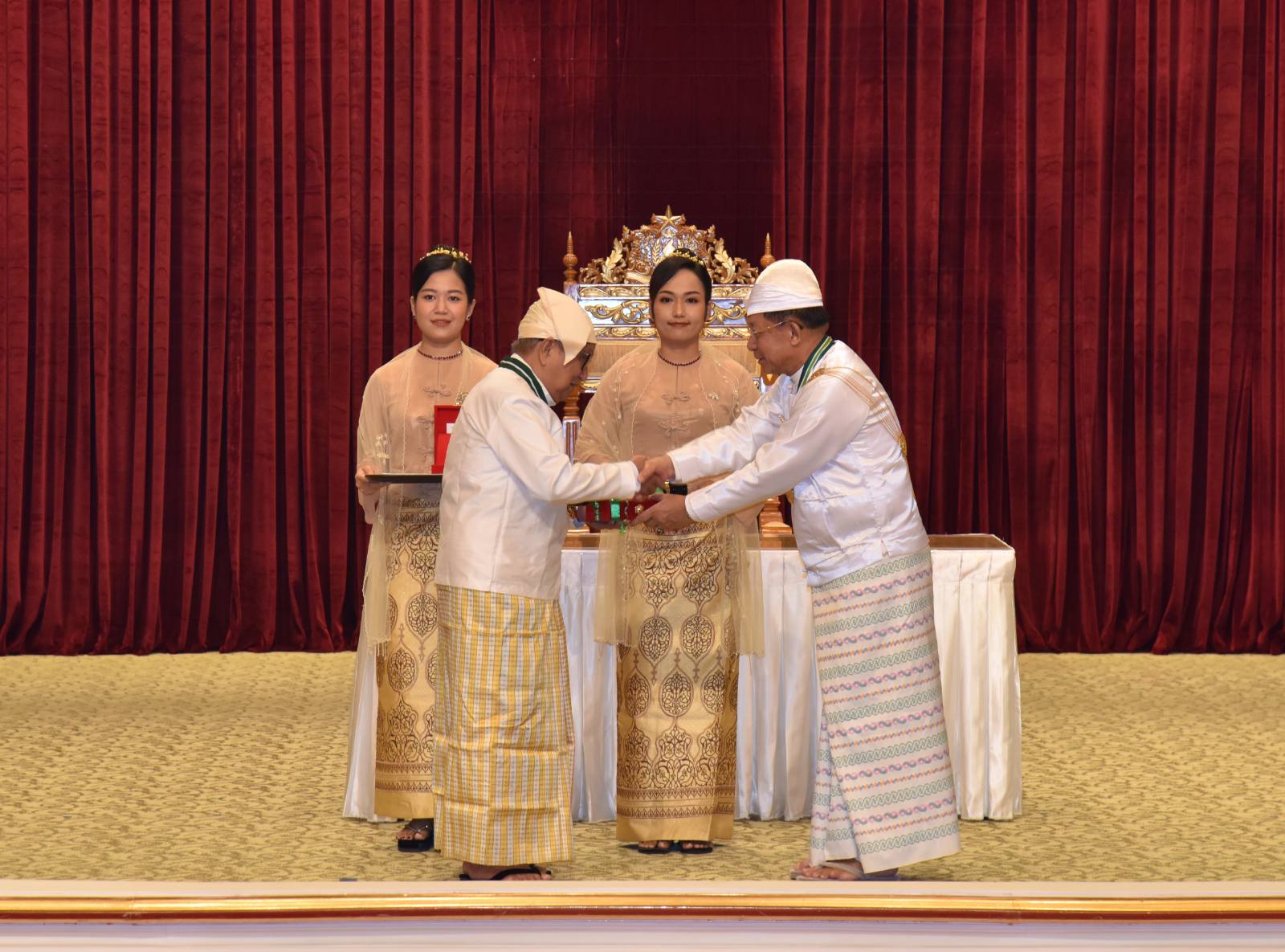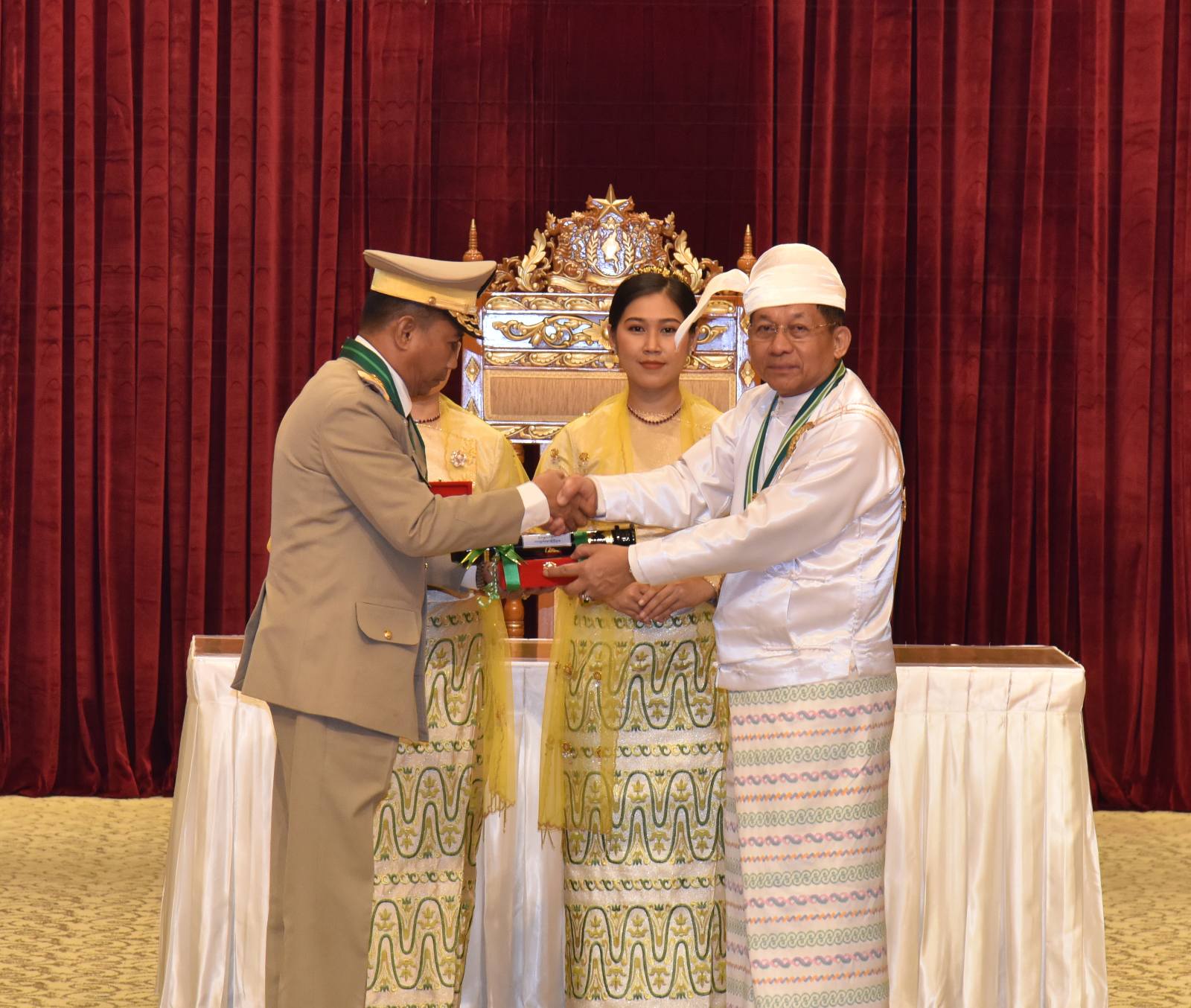 ၂၀၂၅ ခုနှစ်၊ ဂုဏ်ထူးဆောင်ဘွဲ့များ ချီးမြှင့်အပ်နှင်းခြင်းအခမ်းအနားကို ယနေ့နံနက်ပိုင်းတွင် နိုင်ငံတော်စီမံအုပ်ချုပ်ရေးကောင်စီဥက္ကဋ္ဌရုံး၊ သဘင်ဆောင်၌ ကျင်းပရာ နိုင်ငံတော်စီမံအုပ်ချုပ်ရေး ကောင်စီဥက္ကဋ္ဌ နိုင်ငံတော်ဝန်ကြီးချုပ် ဗိုလ်ချုပ်မှူးကြီး သတိုးမဟာသရေစည်သူ သတိုးသီရိသုဓမ္မ မင်းအောင်လှိုင် တက်ရောက်အမှာစကားပြောကြားပြီး ဂုဏ်ထူးဆောင်ဘွဲ့များချီးမြှင့်အပ်နှင်းသည်။