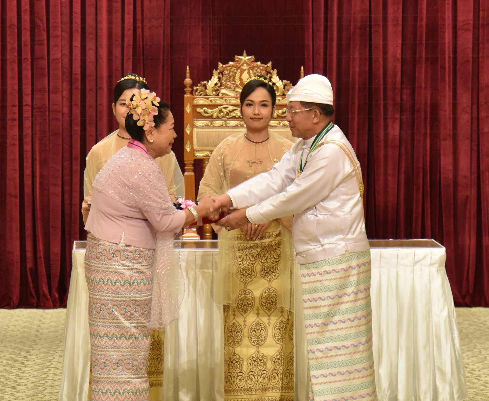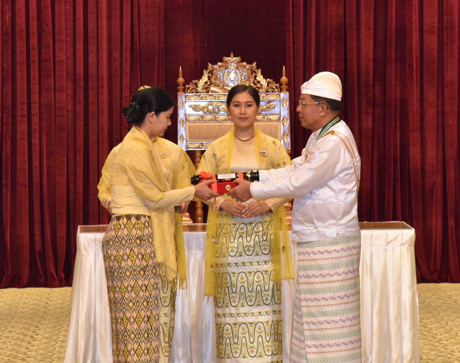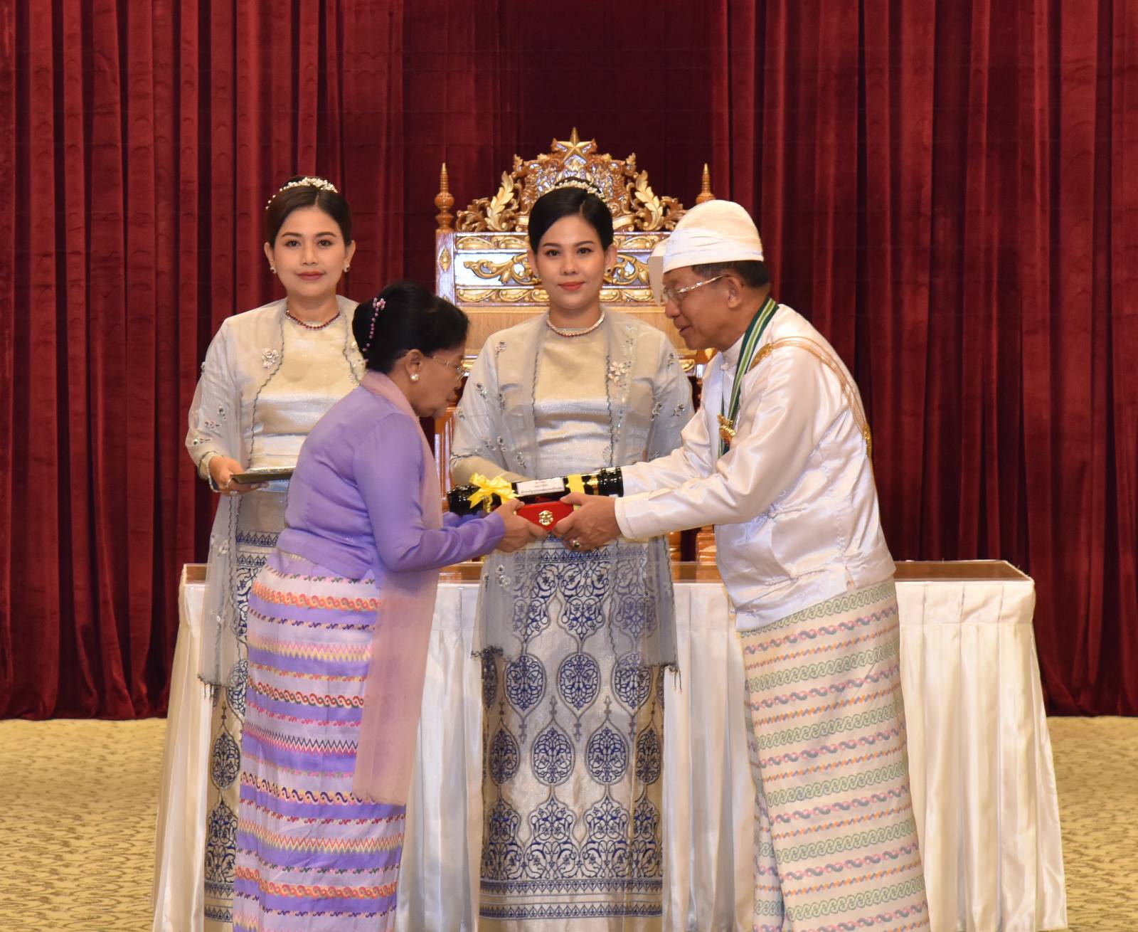 အဆိုပါအခမ်းအနားသို့ နိုင်ငံတော်စီမံအုပ်ချုပ်ရေးကောင်စီဥက္ကဋ္ဌ နိုင်ငံတော်ဝန်ကြီးချုပ်၏ဇနီး ဒေါ်ကြူကြူလှ၊ နိုင်ငံတော်စီမံအုပ်ချုပ်ရေးကောင်စီ ဒုတိယဥက္ကဋ္ဌ ဒုတိယဝန်ကြီးချုပ် ဒုတိယဗိုလ်ချုပ်မှူးကြီး သီရိပျံချီ မဟာသရေစည်သူစိုးဝင်းနှင့် ဇနီးဒေါ်သန်းသန်းနွယ်၊ ကောင်စီအတွင်းရေးမှူးနှင့် ဇနီး၊ တွဲဖက်အတွင်းရေးမှူးနှင့် ဇနီး၊ ကောင်စီဝင်များနှင့် ဇနီးများ၊ ပြည်ထောင်စု အဆင့်ပုဂ္ဂိုလ်များ၊ ပြည်ထောင်စုဝန်ကြီးများနှင့် ဇနီးများ၊ ကာကွယ်ရေးဦးစီးချုပ်ရုံးမှ အဆင့်မြင့် တပ်မတော်အရာရှိကြီးများနှင့် ဇနီးများ၊ ဒုတိယဝန်ကြီးများနှင့် တာဝန်ရှိသူများ၊ ဂုဏ်ထူးဆောင်ဘွဲ့ ရရှိကြသည့် ပုဂ္ဂိုလ်များနှင့် မိသားစုဝင်များ တက်ရောက်ကြသည်။