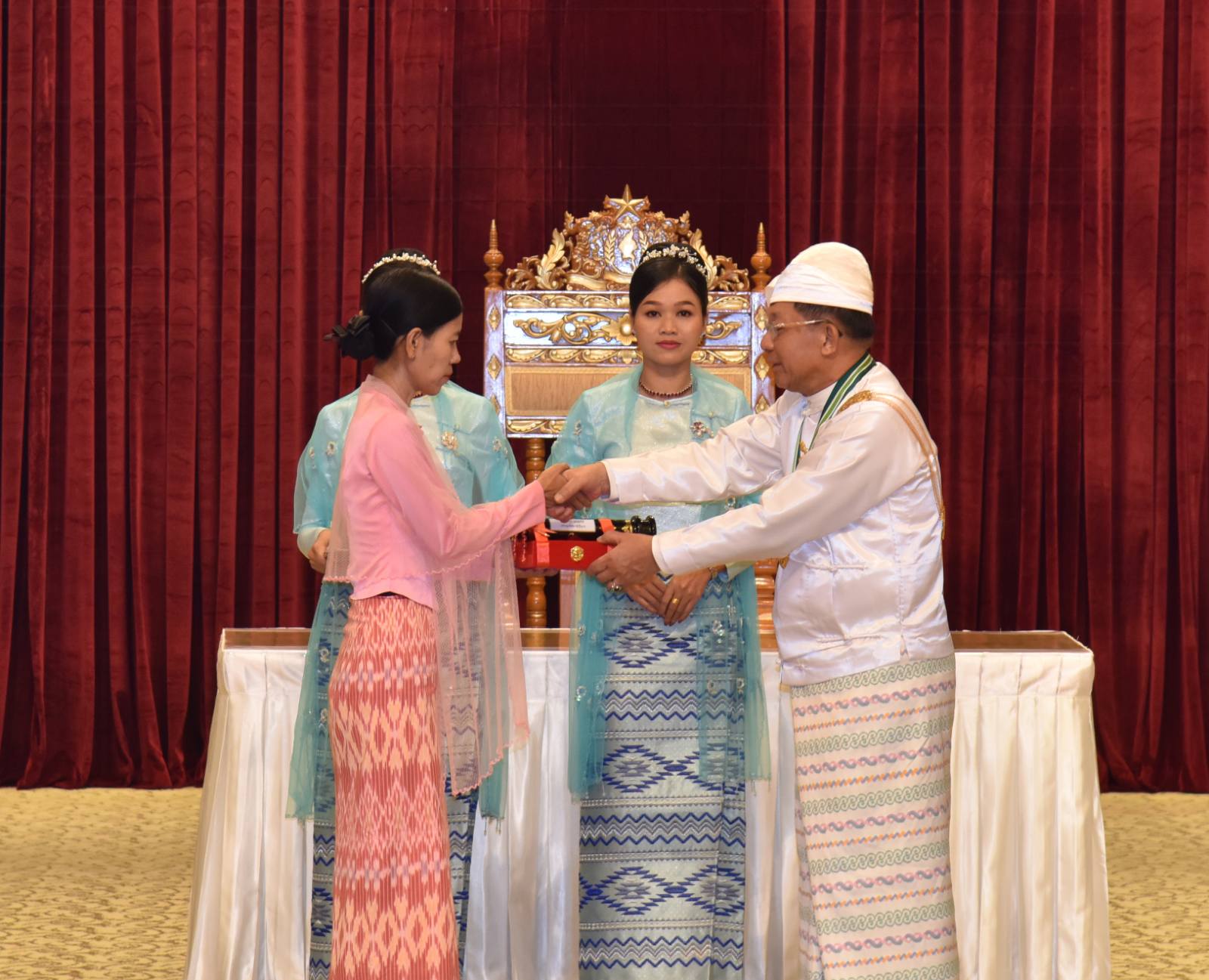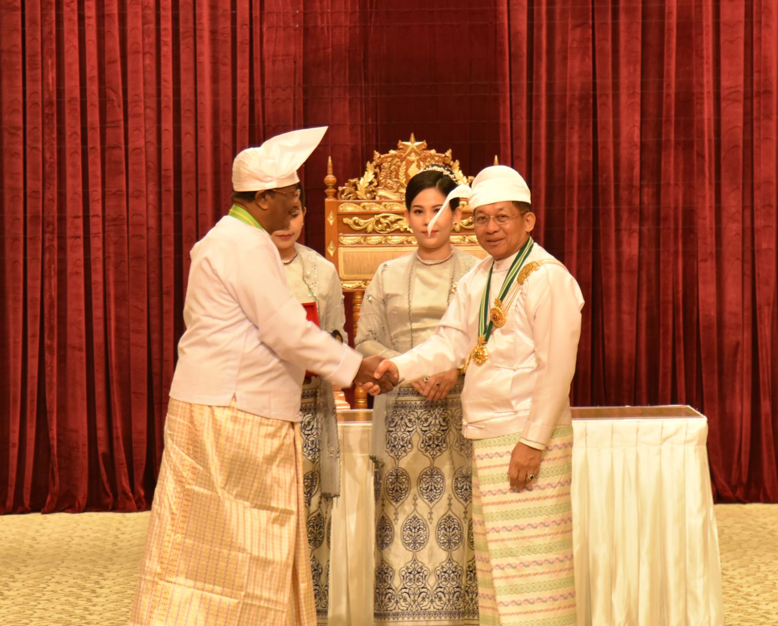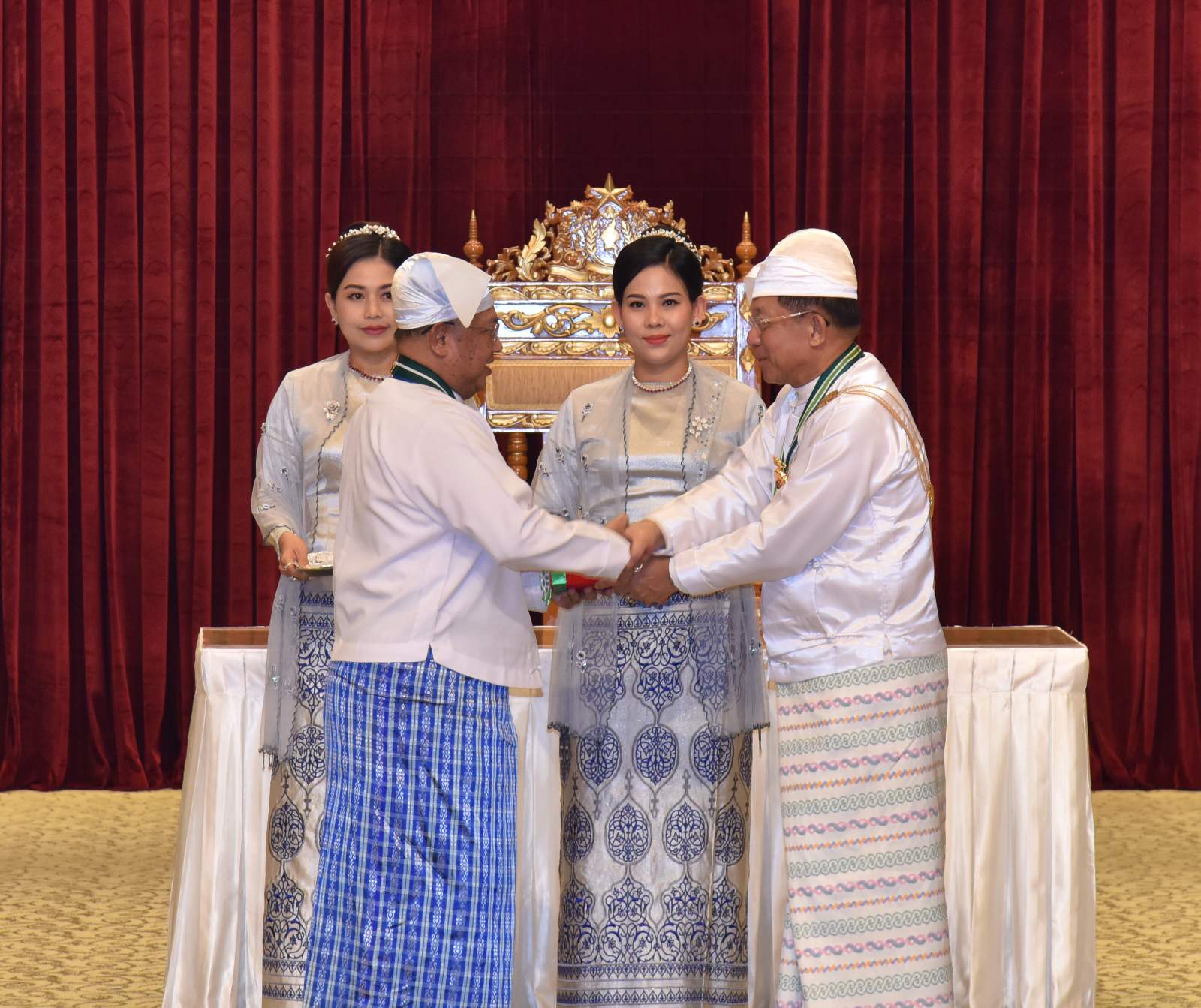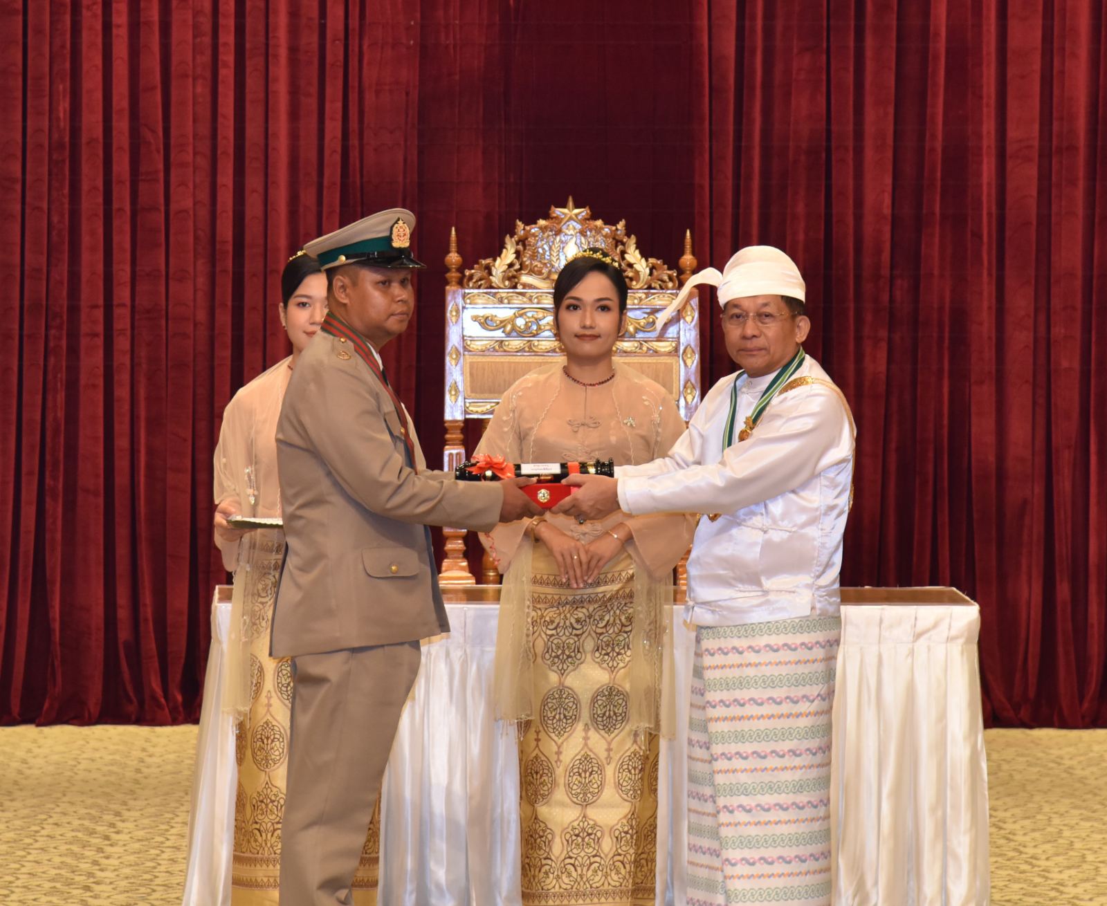 အဆိုပါအခမ်းအနားသို့ နိုင်ငံတော်စီမံအုပ်ချုပ်ရေးကောင်စီဥက္ကဋ္ဌ နိုင်ငံတော်ဝန်ကြီးချုပ်၏ဇနီး ဒေါ်ကြူကြူလှ၊ နိုင်ငံတော်စီမံအုပ်ချုပ်ရေးကောင်စီ ဒုတိယဥက္ကဋ္ဌ ဒုတိယဝန်ကြီးချုပ် ဒုတိယဗိုလ်ချုပ်မှူးကြီး သီရိပျံချီ မဟာသရေစည်သူစိုးဝင်းနှင့် ဇနီးဒေါ်သန်းသန်းနွယ်၊ ကောင်စီအတွင်းရေးမှူးနှင့် ဇနီး၊ တွဲဖက်အတွင်းရေးမှူးနှင့် ဇနီး၊ ကောင်စီဝင်များနှင့် ဇနီးများ၊ ပြည်ထောင်စု အဆင့်ပုဂ္ဂိုလ်များ၊ ပြည်ထောင်စုဝန်ကြီးများနှင့် ဇနီးများ၊ ကာကွယ်ရေးဦးစီးချုပ်ရုံးမှ အဆင့်မြင့် တပ်မတော်အရာရှိကြီးများနှင့် ဇနီးများ၊ ဒုတိယဝန်ကြီးများနှင့် တာဝန်ရှိသူများ၊ ဂုဏ်ထူးဆောင်ဘွဲ့ ရရှိကြသည့် ပုဂ္ဂိုလ်များနှင့် မိသားစုဝင်များ တက်ရောက်ကြသည်။