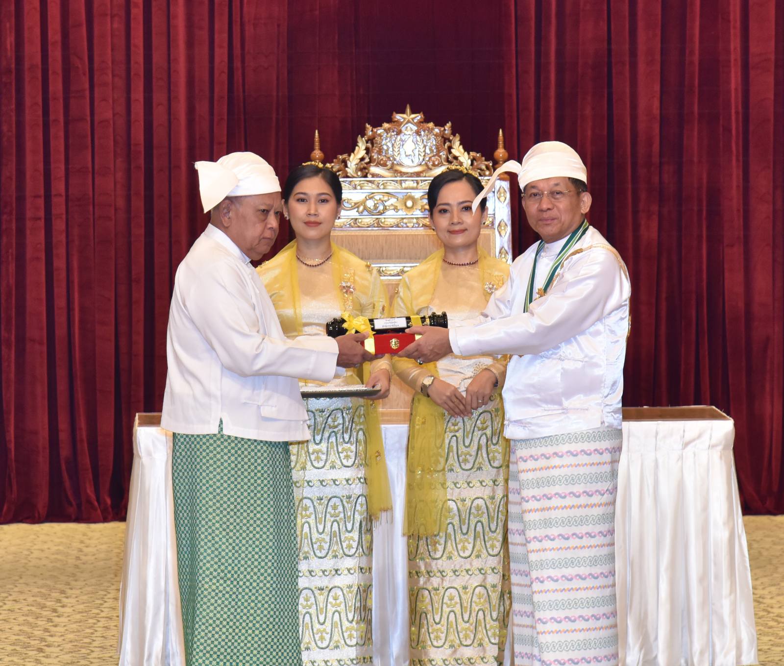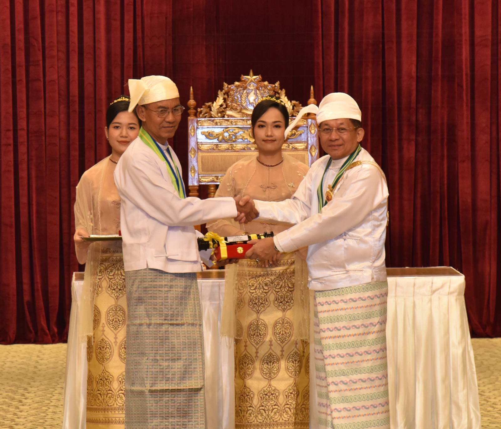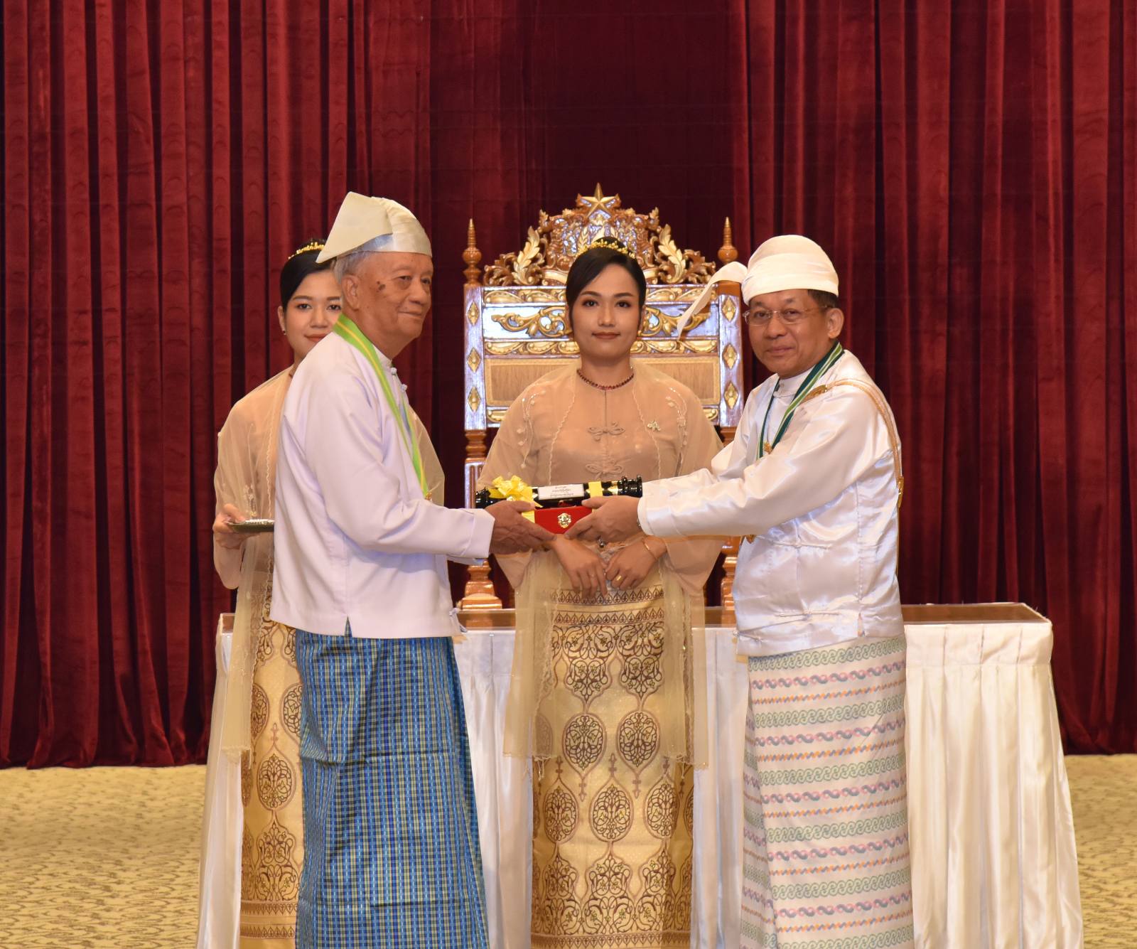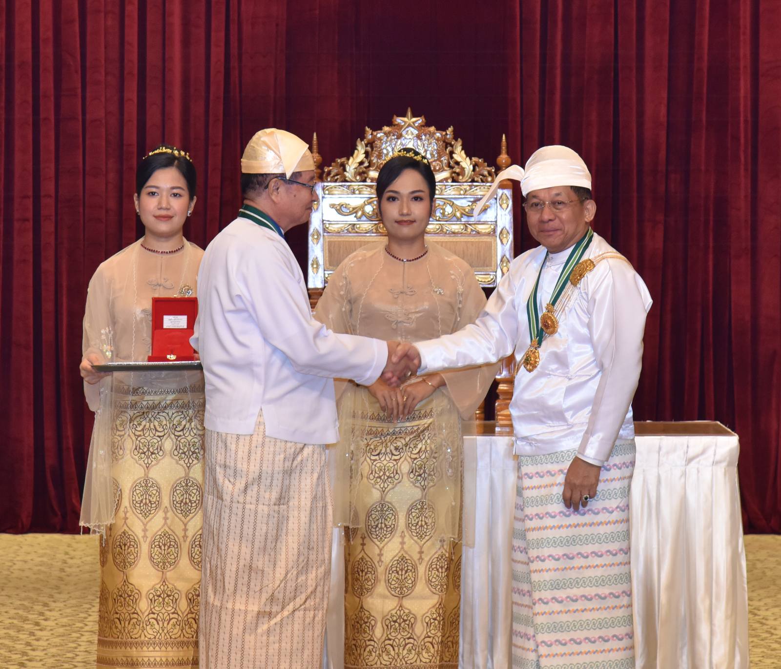 ယနေ့ကျင်းပသည့် ဂုဏ်ထူးဆောင်ဘွဲ့များ ချီးမြှင့်အပ်နှင်းခြင်း အခမ်းအနားတွင် ၂၀၂၅ ခုနှစ်၊ ဇန်နဝါရီလ (၄) ရက် (လွတ်လပ်ရေးနေ့) နှင့် မတ်လ (၂) ရက် (တောင်သူလယ်သမားနေ့) တို့တွင် အမိန့်ကြော်ငြာစာ ထုတ်ပြန်ပြီးဖြစ်သည့် စည်သူဘွဲ့ (၁၃) ဦး၊ သူရဘွဲ့ (၃) ဦး၊ ဇေယျကျော်ထင်ဘွဲ့ (၁၇) ဦး၊ ဝဏ္ဏကျော်ထင်ဘွဲ့ (၁၄) ဦး၊ အလင်္ကာကျော်စွာဘွဲ့ (၁) ဦး၊ သိပ္ပကျော်စွာဘွဲ့ (၂) ဦး၊ စုစုပေါင်း (၅၀) ဦးကို သက်ဆိုင်ရာဂုဏ်ထူးဆောင်ဘွဲ့များ ချီးမြှင့်အပ်နှင်းသွားမည်ဖြစ်ကြောင်း။