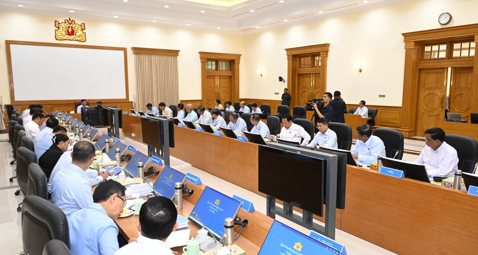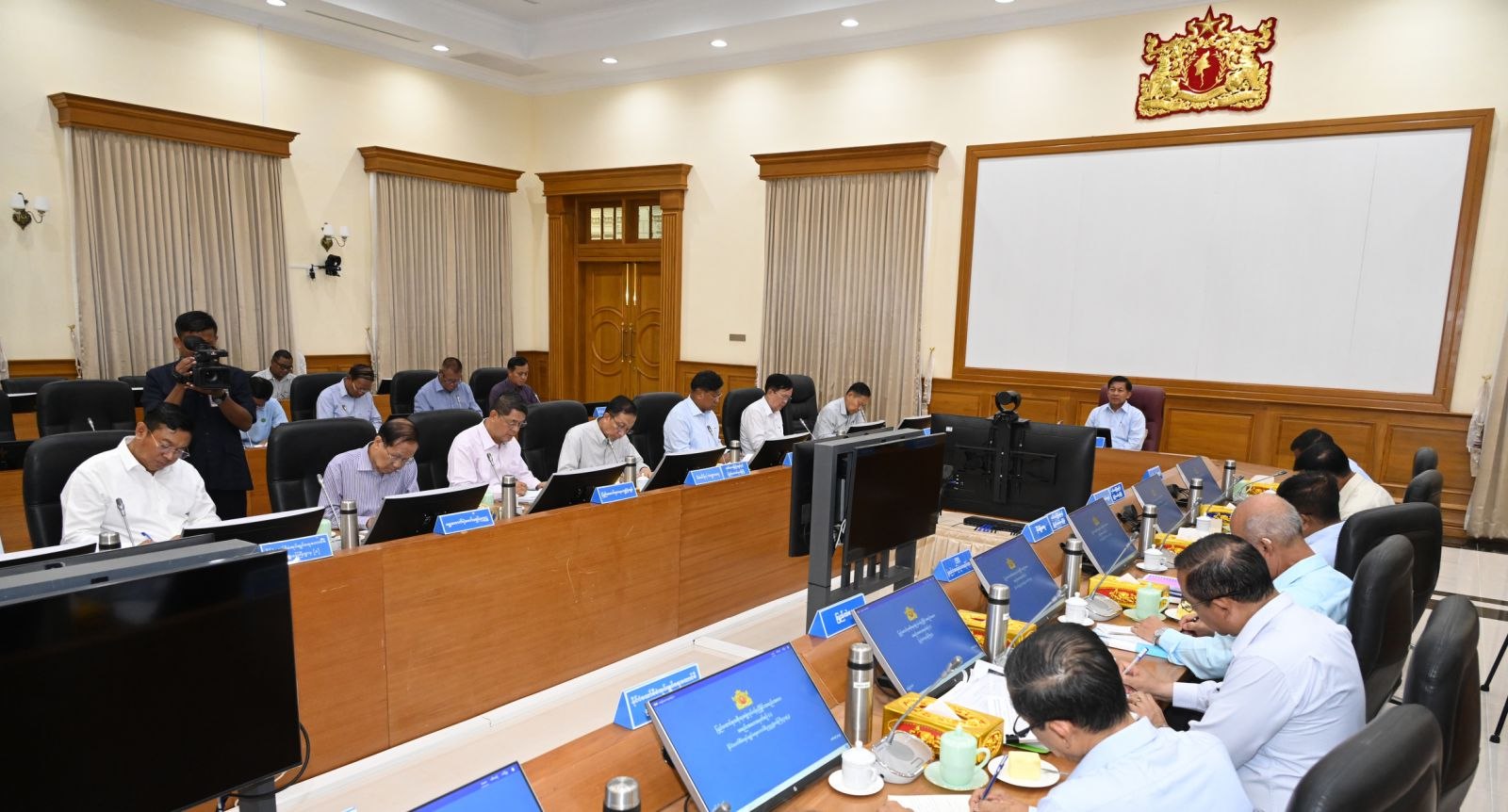 နိုင်ငံတော်စီမံအုပ်ချုပ်ရေးကောင်စီဥက္ကဋ္ဌ နိုင်ငံတော်ဝန်ကြီးချုပ် ဗိုလ်ချုပ်မှူးကြီး မင်းအောင်လှိုင် ပြည်ထောင်စုအစိုးရအဖွဲ့ လုပ်ငန်းညှိနှိုင်းအစည်းအဝေးသို့ တက်ရောက်အမှာစကားပြောကြား
