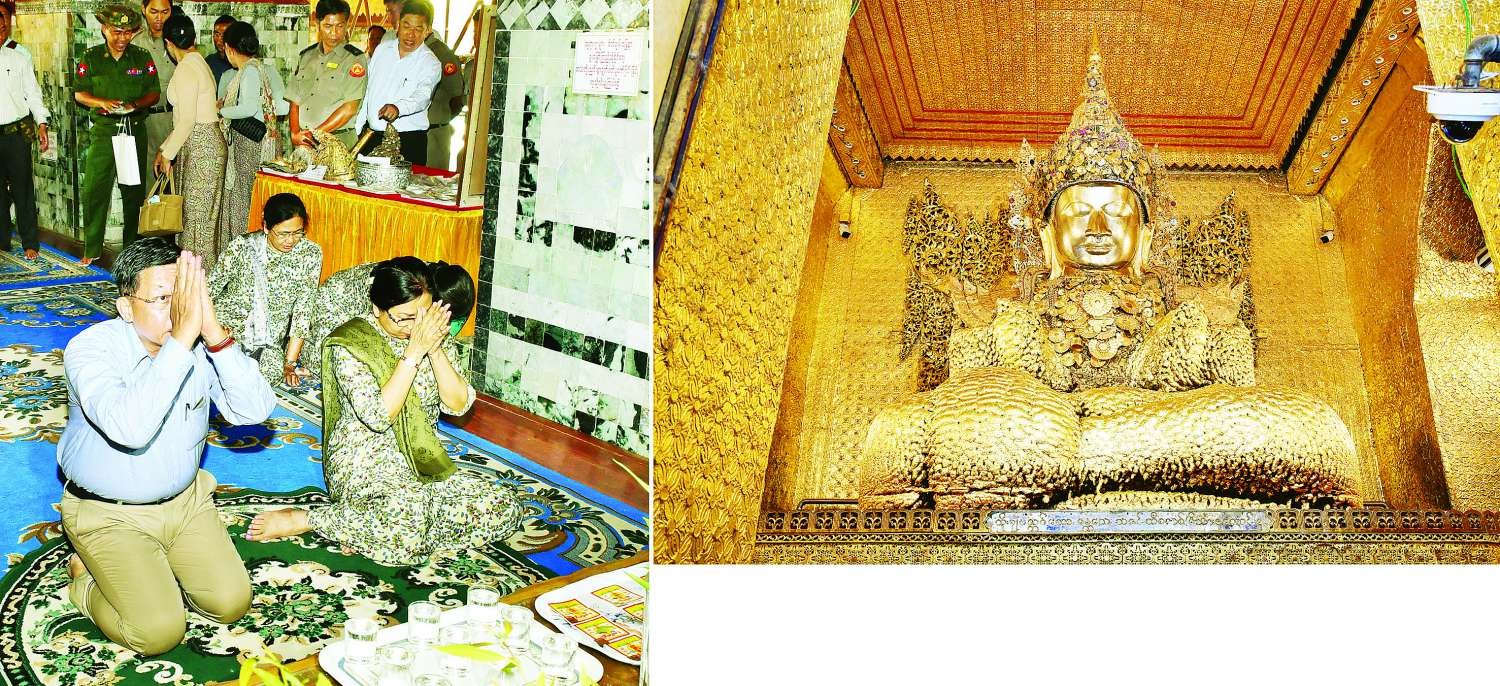 ၎င်းနောက် နိုင်ငံတော်စီမံအုပ်ချုပ်ရေးကောင်စီဥက္ကဋ္ဌ နိုင်ငံတော်ဝန်ကြီးချုပ်နှင့် ဇနီးတို့သည် မဟာမုနိဘုရားကြီးအား ဖူးမြော်ကြည်ညိုပြီး ပန်းရေချမ်းများ ကပ်လှူပူဇော်၍ ဖူးမြော် ကြည်ညိုသည်။