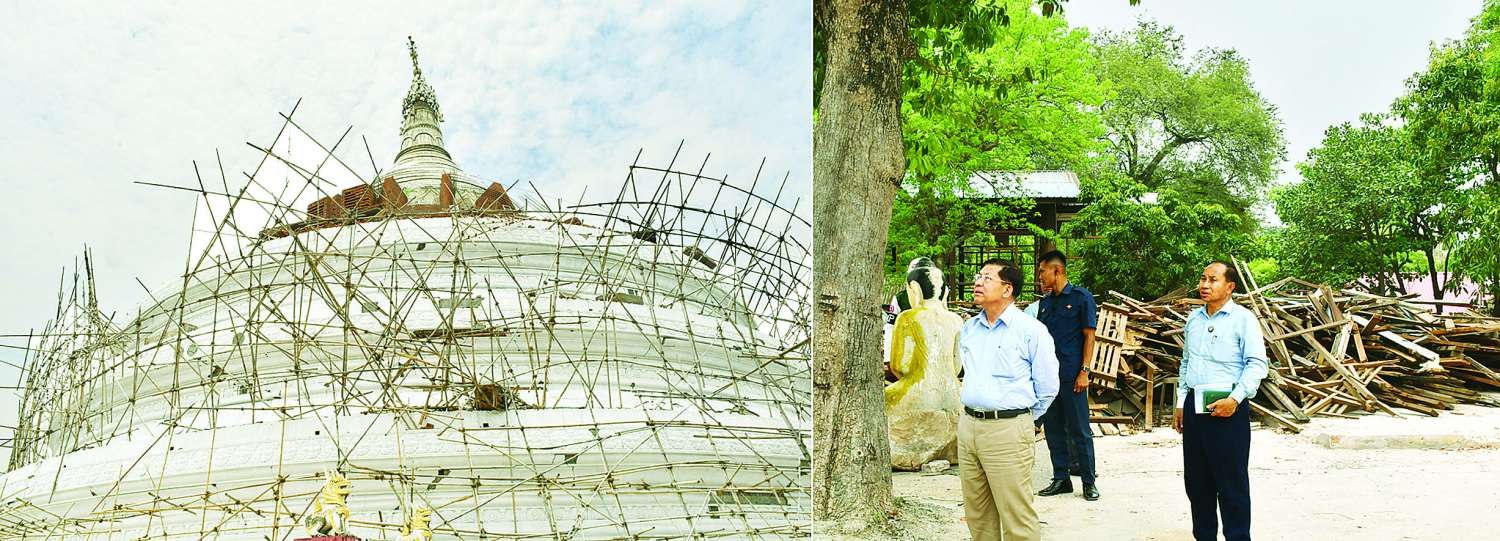 ထို့နောက် နိုင်ငံတော်စီမံအုပ်ချုပ်ရေးကောင်စီဥက္ကဋ္ဌ နိုင်ငံတော်ဝန်ကြီးချုပ်သည် ငလျင်ဒဏ်ကြောင့် ဗုဒ္ဓရုပ်ပွား တော်မြတ် ထိခိုက်ပျက်စီးခဲ့မှုအခြေအနေများကို လှည့်လည်ကြည့်ရှုစစ်ဆေးပြီး တာဝန်ရှိသူများ၏ တင်ပြချက်များအပေါ် ပြန်လည်ပြင်ဆင်ရေးလုပ်ငန်းများ ဆောင်ရွက်ရာ၌ ရှေးမူလက်ရာအတိုင်း ပြန်လည်ပြင်ဆင်ဆောင်ရွက်သွားရန်နှင့် အခြားလိုအပ်သည်များကို လမ်းညွှန်မှာကြားသည်။
