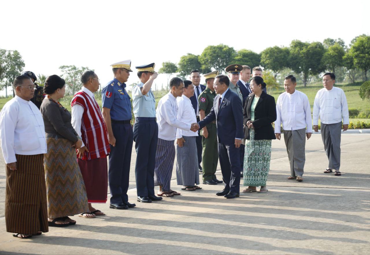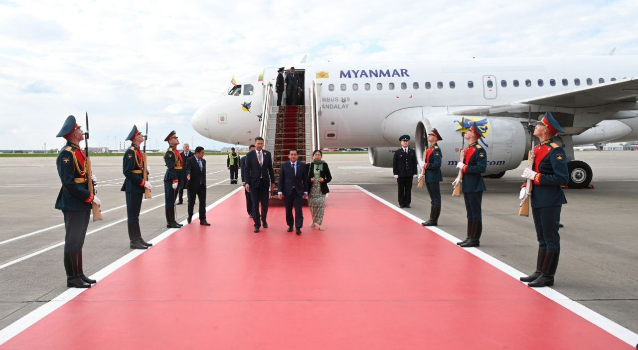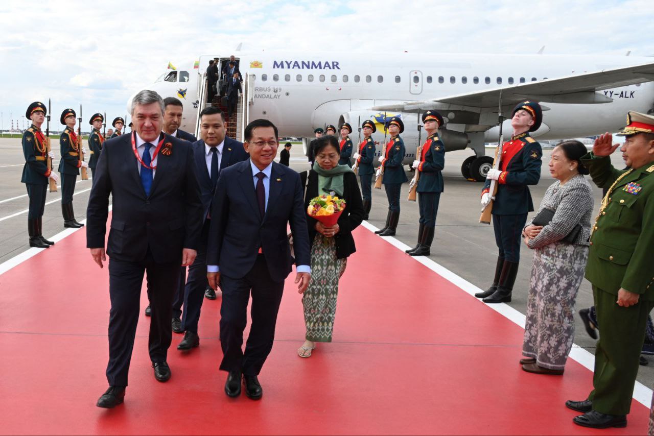 ရုရှားဖက်ဒရေးရှင်းနိုင်ငံသမ္မတ မစ္စတာ ဗလာဒီမာပူတင်၏ ဖိတ်ကြားချက်အရ ရုရှားဖက်ဒရေးရှင်း နိုင်ငံတွင် ကျင်းပပြုလုပ်မည့် ၁၉၄၁-၁၉၄၅ မဟာမျိုးချစ်စစ်ပွဲကြီးအောင်ပွဲ နှစ် (၈၀) ပြည့် အထိမ်းအမှတ် စစ်ရေးပြအခမ်းအနားသို့ တက်ရောက်ရန်အတွက် နိုင်ငံတော်စီမံအုပ်ချုပ်ရေးကောင်စီဥက္ကဋ္ဌ နိုင်ငံတော်ဝန်ကြီးချုပ် ဗိုလ်ချုပ်မှူးကြီး မင်းအောင်လှိုင်နှင့် ဇနီး ဒေါ်ကြူကြူလှ ဦးဆောင်သည့် မြန်မာအဆင့်မြင့်ကိုယ်စားလှယ်အဖွဲ့သည် ယနေ့နံနက်ပိုင်းတွင် အထူးလေယာဉ်ဖြင့် နေပြည်တော်တပ်မတော်လေဆိပ်မှ ထွက်ခွာသည်။