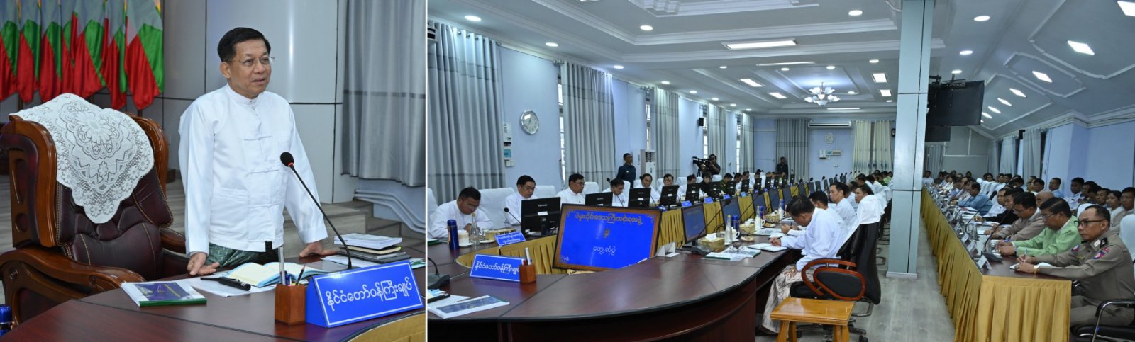 ယင်းနောက် မိမိနိုင်ငံတော်စီမံအုပ်ချုပ်ရေးကောင်စီအစိုးရအနေဖြင့် ၂၀၂၀ ပြည့်နှစ် ပါတီစုံဒီမိုကရေစီ အထွေထွေရွေးကောက်ပွဲတွင် ဖြစ်ပေါ်ခဲ့သည့် မဲမသမာမှု ဖြစ်စဉ်များကို သင်ခန်းစာယူပြီး လာမည့် ရွေးကောက်ပွဲတွင် မဲစာရင်းများ မှန်ကန်မှုရှိစေေးအတွက် မြေပြင်စာရင်းကောက်ယူခြင်း လုပ်ငန်းများအပါအဝင် လုပ်ငန်းစဉ်များအတိုင်း စနစ်တကျစီမံဆောင်ရွက်လျက်ရှိကြောင်း၊ မဲစာရင်း အချက်အလက်များ မှန်ကန်မှုရှိစေရေး လာမည့်အောက်တိုဘာလတွင် လူဦးရေနှင့် အိမ်အကြောင်းအရာ သန်းခေါင်စာရင်း ကောက်ယူခြင်းလုပ်ငန်းများကို ဆောင်ရွက်သွားမည်ဖြစ်ကြောင်း၊ ထို့ကြောင့် အောက်တိုဘာလ ၁ ရက်နေ့မှစတင်၍ သန်းခေါင်စာရင်းကောက်ယူရာတွင် ပဲခူးတိုင်းဒေသကြီး အတွင်း ရာနှုန်းပြည့်ကောက်ယူနိုင်ရေး ဝိုင်းဝန်းကြိုးပမ်း ဆောင်ရွက်သွားကြရန်လိုကြောင်း၊ စာရင်း ဇယားများ မှန်ကန်စွာရရှိစေရေး ဆောင်ရွက်ကြရန်လိုကြောင်း၊ ရွေးကောက်ပွဲကို စည်းစနစ်ကျနမှု ရှိသည့် အထွေထွေရွေးကောက်ပွဲတစ်ရပ်ဖြစ်စေရေးနှင့် ၎င်းရွေးကောက်ပွဲမှ ထွက်ပေါ်လာသည့် အစိုးရကို နိုင်ငံတော်တာဝန်များ လွှဲအပ်နိုင်ရေး ဆက်လက်ဆောင်ရွက်သွားရမည်ဖြစ်ကြောင်း၊ သိက္ခာရှိသည့် ရွေးကောက်ပွဲနှင့် သိက္ခာရှိသည့် လွှတ်တော်အစည်းအဝေး ကျင်းပနိုင်ရေးဆောင်ရွက် ရမည် ဖြစ်ကြောင်း၊ လွှတ်တော်အသီးသီးတွင် အစည်းအဝေး အထမြောက်စေရေး၊ သိက္ခာရှိသည့် လွှတ်တော်အစည်းအဝေးဖြစ်စေရေးနှင့် သတ်မှတ်ကိုယ်စားလှယ်များ ရွေးချယ်တက်ရောက်နိုင်ရေး ဆောင်ရွက်သွားရမည်ဖြစ်ကြောင်း၊ အဆိုပါ လွှတ်တော်များတွင် သက်ဆိုင်ရာဒေသအလိုက် ပါဝင်သင့်သူများ ပါဝင်မှသာ လွှတ်တော်အတွင်း ကိုယ်စားပြုမှုများမည်ဖြစ်ကြောင်း၊ နိုင်ငံတော်၏ နိုင်ငံရေးဖြစ်ပေါ် ပြောင်းလဲမှု အခြေအနေများနှင့် လွတ်လပ်၍တရားမျှတသည့် ပါတီစုံဒီမိုကရေစီ အထွေထွေရွေးကောက်ပွဲတစ်ရပ် အောင်မြင်စွာ ကျင်းပနိုင်ရေးဆောင်ရွက်လျက်ရှိသည့် အခြေအနေများကို သိရှိနိုင်ရန် ပြောကြားရခြင်းဖြစ်ကြောင်း။