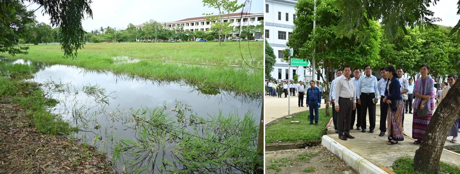 ရှင်းလင်းတင်ပြမှုများအပေါ် နိုင်ငံတော်စီမံအုပ်ချုပ်ရေးကောင်စီဥက္ကဋ္ဌ နိုင်ငံတော်ဝန်ကြီးချုပ်က တက္ကသိုလ်အတွင်း မိုးရာသီကာလ၌ တက္ကသိုလ်ပရိဝုဏ်အတွင်း ရေဝပ်မှုများမရှိစေရေး ဆောင်ရွက်ရန်နှင့်ရေမြောင်းများ စနစ်တကျတူးဖော်ထားရှိရန်၊ တက္ကသိုလ်အတွင်း သန့်ရှင်းသာယာလှပရေးနှင့် ဥပဓိရုပ်ကောင်းမွန်စေရေးတို့အတွက် လိုအပ်သည်များလမ်းညွှန်မှာကြားခဲ့သည်။