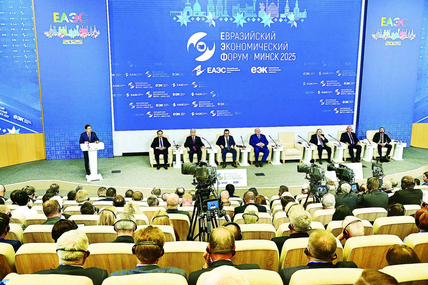 အဆိုပါ စတုတ္ထအကြိမ် ဥရောပ-အာရှ စီးပွားရေးဖိုရမ် (EEF 2025) ကို “ဥရောပ-အာရှ စီးပွားရေးပေါင်းစည်းညီညွတ်ရေး မဟာဗျူဟာ-ရလဒ်များနှင့် အလားအလာများ” (Strategy of the Eurasian Economic Integration: outcomes and prospects) ခေါင်းစဉ်ဖြင့် ကျင်းပခြင်းဖြစ်ပြီး ဖိုရမ်သို့ EAEU ၏ အလှည့်ကျဥက္ကဋ္ဌဖြစ်သည့် ဘယ်လာရုစ်သမ္မတနိုင်ငံ သမ္မတနှင့်အတူ ဥရောပ-အာရှစီးပွားရေးသမဂ္ဂ (EAEU) အဖွဲ့ဝင်နိုင်ငံများဖြစ်ကြသည့် ရုရှားဖက်ဒရေးရှင်းနိုင်ငံသမ္မတ၊ ကာဇက်စတန်နိုင်ငံသမ္မတ၊ ကာဂျစ်စတန်နိုင်ငံသမ္မတ၊ EAEU Observers နိုင်ငံဖြစ်သည့် ကျူးဘားနိုင်ငံသမ္မတ၊ ဖိတ်ကြားထားသည့် နိုင်ငံများဖြစ်ကြသည့် မွန်ဂိုလီးယားနိုင်ငံ၊ ယူအေအီးနိုင်ငံတို့မှ ကိုယ်စားလှယ်များ၊ ပြည်ထောင်စုသမ္မတမြန်မာနိုင်ငံတော် နိုင်ငံတော်စီမံအုပ်ချုပ်ရေးကောင်စီဥက္ကဋ္ဌ နိုင်ငံတော်ဝန်ကြီးချုပ်နှင့် နီကွာရာဂွာသမ္မတ၏ အထူးကိုယ်စားလှယ်တို့ တက်ရောက်ကြပြီး ဥရောပ-အာရှစီးပွားရေး ပူးပေါင်းဆောင်ရွက်မှုကို စိတ်ပါဝင်စားသည့် မိတ်ဖက်နိုင်ငံများမှ အစိုးရကိုယ်စားလှယ်များ၊ အကြီးစား၊ အလတ်စားနှင့် အသေးစားစီးပွားရေးလုပ်ငန်းရှင်များ၊ နိုင်ငံတကာအဖွဲ့အစည်းများမှ ကိုယ်စားလှယ်များ တက်ရောက်ကြသည်။