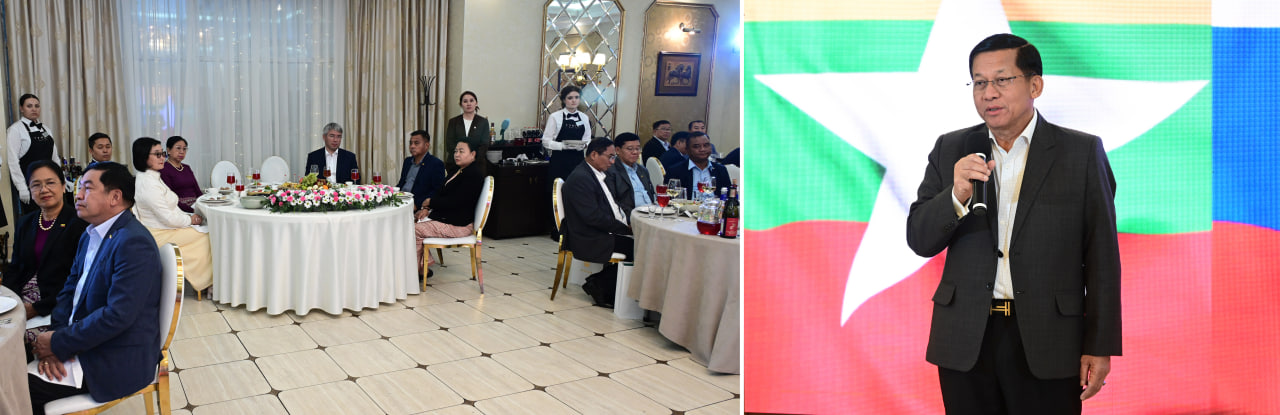 နိုင်ငံတော်စီမံအုပ်ချုပ်ရေးကောင်စီဥက္ကဋ္ဌ နိုင်ငံတော်ဝန်ကြီးချုပ် ဗိုလ်ချုပ်မှူးကြီး မင်းအောင်လှိုင်နှင့် ဇနီး ဒေါ်ကြူကြူလှ ဦးဆောင်သည့် မြန်မာအဆင့်မြင့်ကိုယ်စားလှယ်အဖွဲ့အား ရုရှားဖက်ဒရေးရှင်းနိုင်ငံ၊ Buryatia ပြည်နယ်၊ ပြည်နယ်အကြီးအကဲက ဂုဏ်ပြုညစာဖြင့် တည်ခင်းဧည့်ခံ