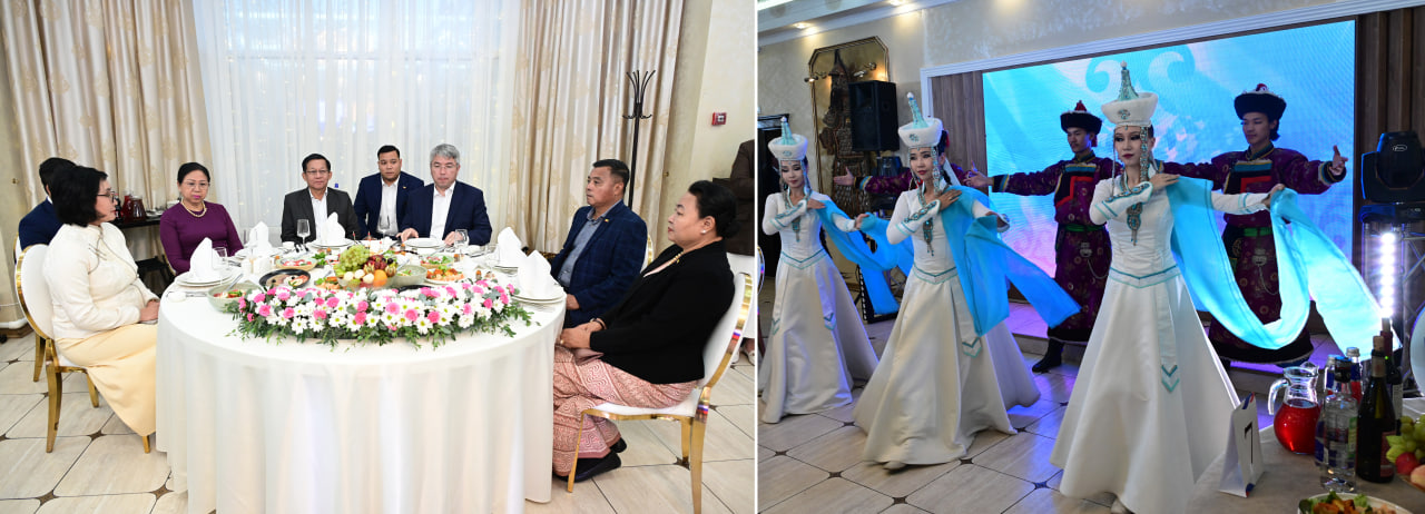 ညစာသုံးဆောင်နေစဉ်အတွင်း Buryatia ပြည်နယ်၊ အမျိုးသားကဇာတ်ရုံမှ ရိုးရာအကအလှအဖွဲ့များက တေးသံသာများ၊ အကအလှများဖြင့် ဖျော်ဖြေတင်ဆက်ခဲ့ကြသည်။