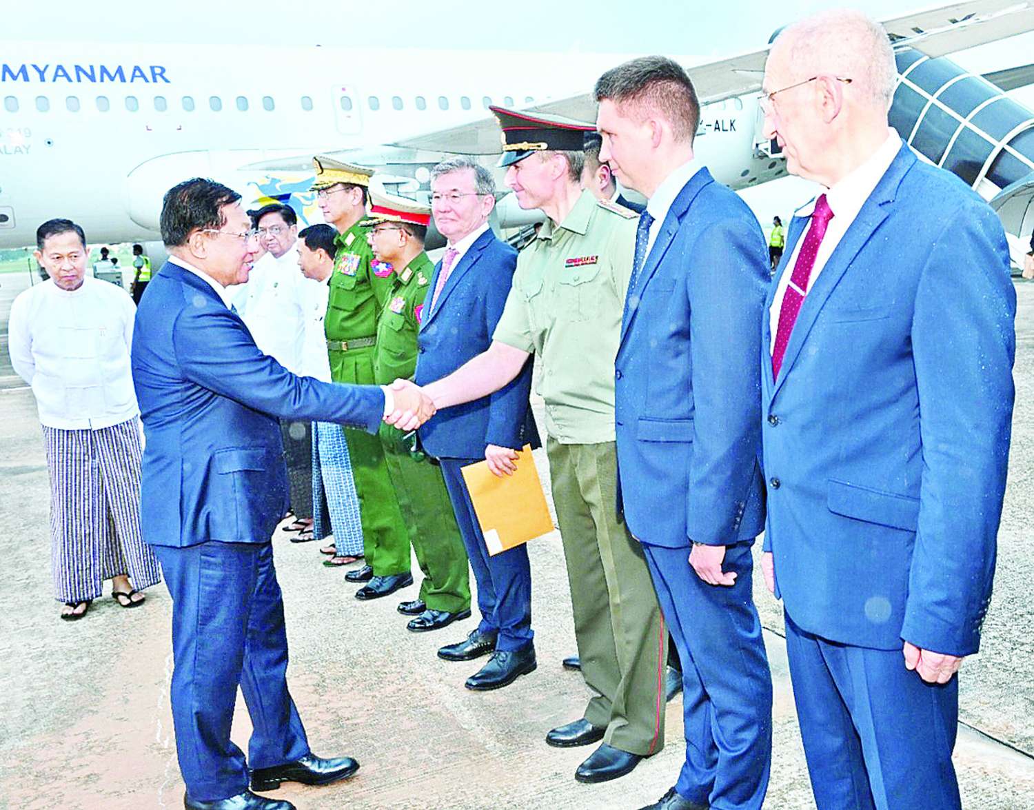နိုင်ငံတော်စီမံအုပ်ချုပ်ရေးကောင်စီဥက္ကဋ္ဌ နိုင်ငံတော်ဝန်ကြီးချုပ် ဗိုလ်ချုပ်မှူးကြီး မင်းအောင်လှိုင် ဦးဆောင်သည့် မြန်မာအဆင့်မြင့်ကိုယ်စားလှယ်အဖွဲ့ မြန်မာနိုင်ငံသို့ ပြန်လည်ရောက်ရှိ