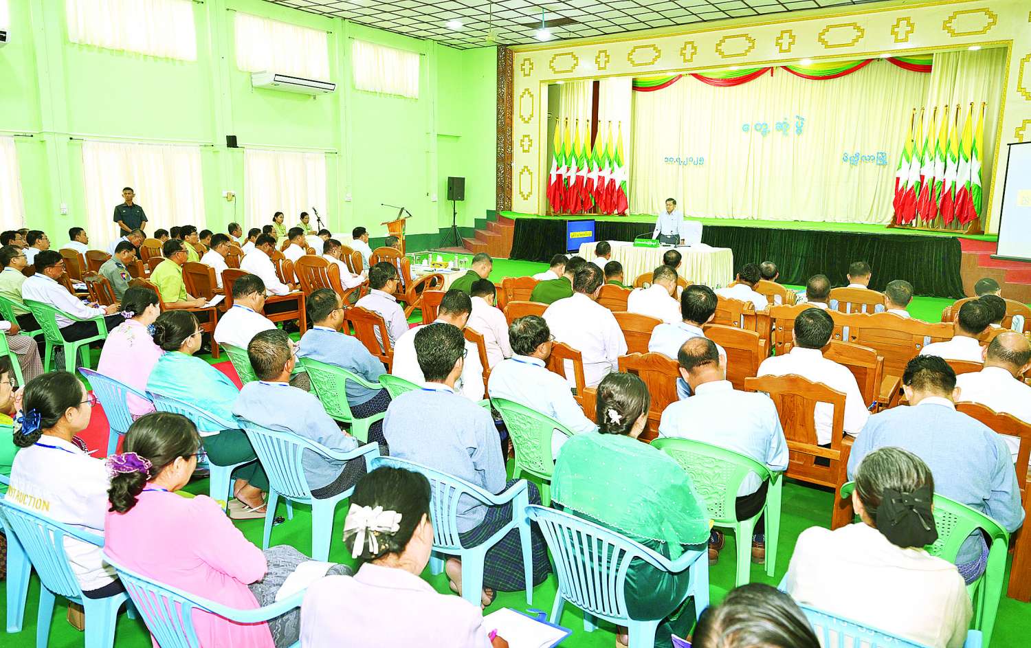 ကျန်းမာရေးနှင့်ပတ်သက်၍ နိုင်ငံတော်အနေဖြင့် တစ်မျိုးသားလုံး ကျန်းမာကြံ့ခိုင်မှုရှိစေရေး တစ်နိုင်ငံလုံးအတိုင်းအတာဖြင့် ဖြည့်ဆည်းဆောင် ရွက်ပေးလျက်ရှိကြောင်း၊ ဆေးရုံများအဆင့်မြှင့်တင် ပေးခြင်း၊ လိုအပ်သည့် ကျန်းမာရေးအထောက် အကူပြုပစ္စည်းများ၊ ဆေးဝါးများ ဖြည့်ဆည်းဆောင်ရွက်ပေးခြင်းများကို အလေးထား ဆောင်ရွက်ပေးလျက်ရှိကြောင်း၊ ကျန်းမာရေးနှင့်စပ်ဆက်၍ အားကစားကဏ္ဍ မြင့်မားရေးကိုလည်း အားပေးမြှင့်တင်ပေးလျက်ရှိကြောင်း၊ တိုင်းဒေသကြီးနှင့် ပြည်နယ်အလိုက် အားကစားရုံများ၊ အားကစားကွင်းများ အဆင့်မြှင့်တင်ပေးခြင်းများကို ဆောင်ရွက်ပေးလျက်ရှိကြောင်း၊ အားကစားနှင့်ပတ်သက်၍ အခြေခံအဆောက်အအုံနှင့် အထောက်အကူပြုပစ္စည်းများ ပြည့်စုံမှသာလျှင် အားကစားစိတ်ဓာတ်များ ပြည့်ဝလာမည်ဖြစ်ပြီး ပြည့်ပြည့်ဝဝ လေ့ကျင့်အားထုတ် နိုင်မည်ဖြစ်ကြောင်း၊ နည်းစနစ်ပိုင်းနှင့် ကြံ့ခိုင်မှုအပိုင်း ပြည့်ဝမှုရှိစေရေးအတွက်လည်း ဆောင်ရွက်သွားကြရမည်ဖြစ်ကြောင်း၊ မိတ္ထီလာခရိုင်အနေဖြင့်လည်း ကျန်းမာရေးနှင့်အားကစားကဏ္ဍမြင့်မားမှု ရှိစေရေး အားပေး ဆောင်ရွက်သွားကြရန်လိုကြောင်း။