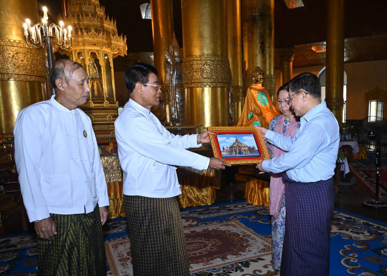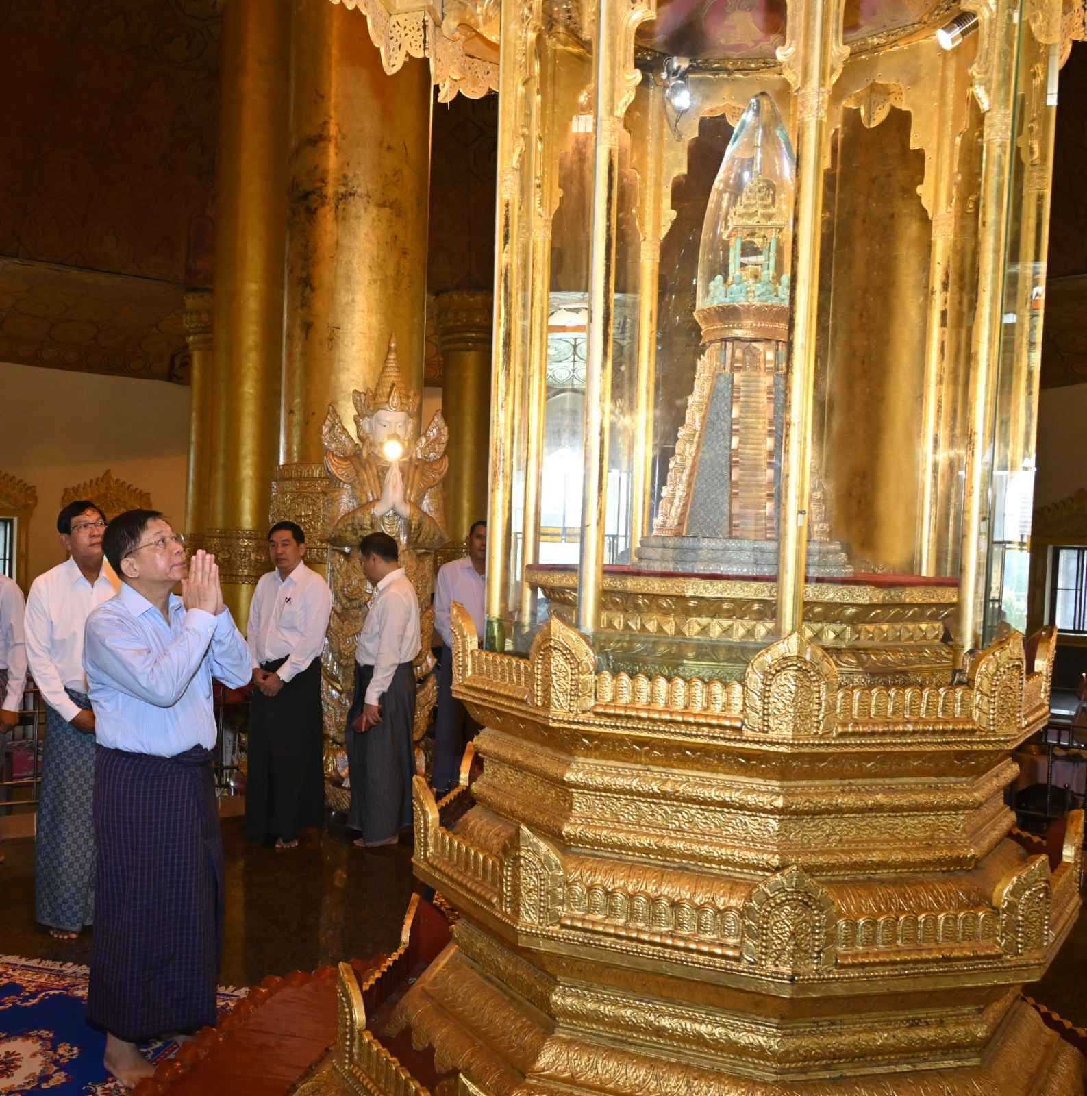 ယင်းနောက် နိုင်ငံတော်စီမံအုပ်ချုပ်ရေးကောင်စီဥက္ကဋ္ဌ နိုင်ငံတော်ဝန်ကြီးချုပ်သည် စေတီတော်မြတ်အား လက်ယာရစ် လှည့်လည်ပူဇော်၍ စေတီတော်ကြီး ရေရှည်တည်တံ့ခိုင်မြဲရေး ထိန်းသိမ်းဆောင်ရွက်ထားရှိမှု အခြေအနေများအား ကြည့်ရှုကာ စေတီတော်မြတ်ကြီး အမြဲသန့်ရှင်းသာယာပြီး ကြည်ညိုဖွယ်ဖြစ်နေစေရေးအတွက် ဆောင်ရွက်ရန်၊ စေတီတော်ကြီးရင်ပြင်တော် သန့်ရှင်းရေးအပါအဝင် ဘက်စုံပြုပြင်မွမ်းမံရန် လိုအပ်သည်များကို လမ်းညွှန်မှာကြားသည်။