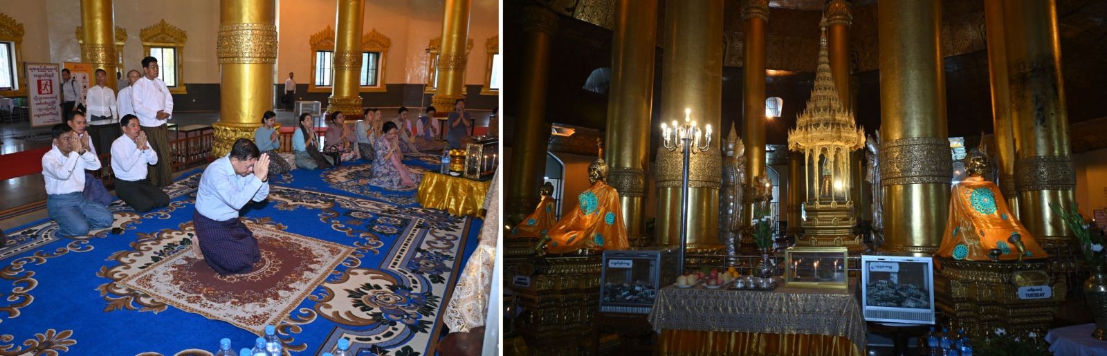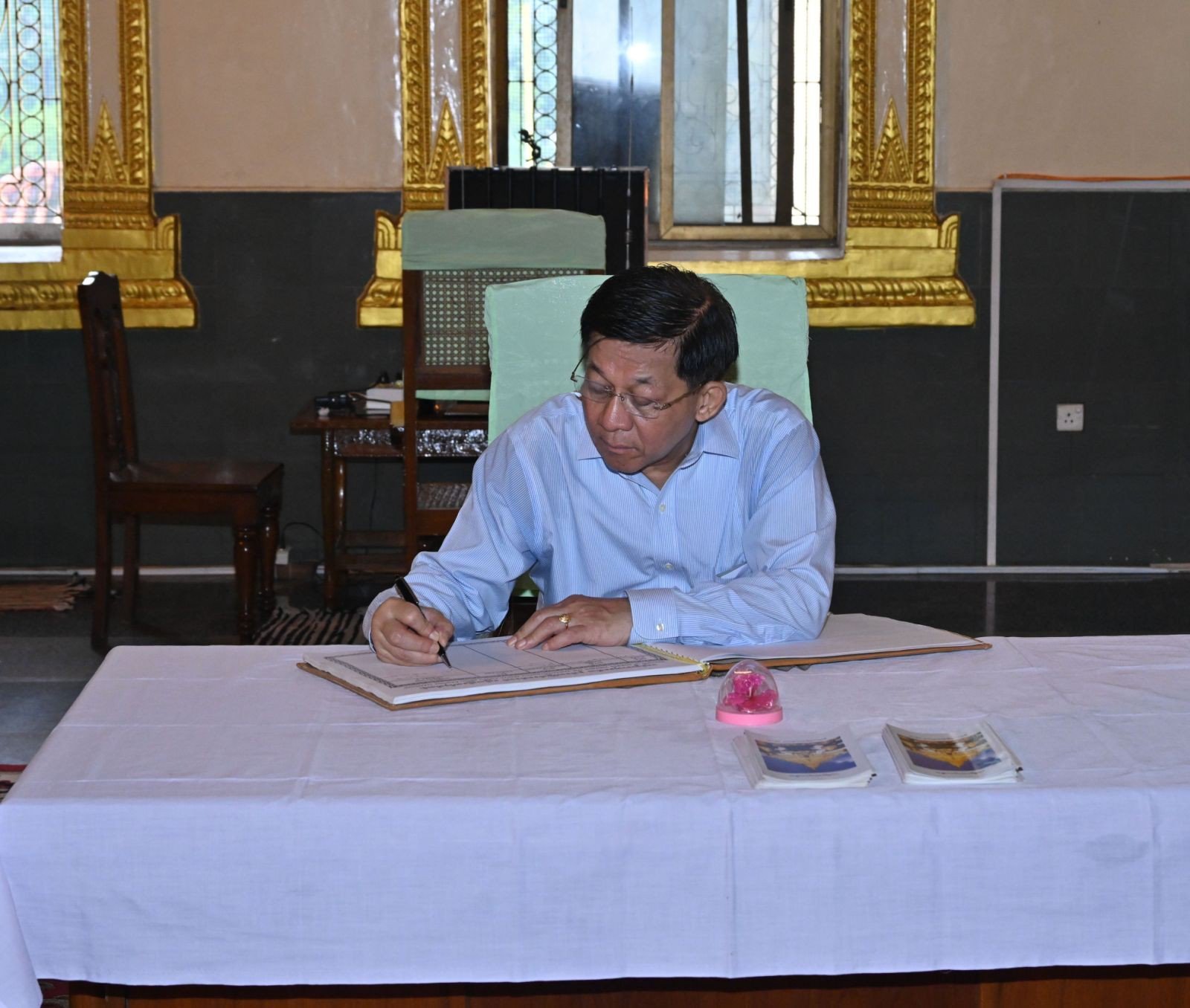 ထို့နောက် နိုင်ငံတော်စီမံအုပ်ချုပ်ရေးကောင်စီဥက္ကဋ္ဌ နိုင်ငံတော်ဝန်ကြီးချုပ်နှင့် အဖွဲ့ဝင်များသည် စေတီတော်ကြီးတွင် ကိန်းဝပ်စံပယ်တော်မူလျက်ရှိသည့် မြတ်ဗုဒ္ဓ၏ စွယ်တော်ပွားကို ဖူးမြော်ကြည်ညိုကြသည်။ ၎င်းနောက် နိုင်ငံတော်စီမံအုပ်ချုပ်ရေးကောင်စီဥက္ကဋ္ဌ နိုင်ငံတော်ဝန်ကြီးချုပ်က စေတီတော်ကြီး ဧည့်သည်တော်မှတ်တမ်းစာအုပ်တွင် လက်မှတ်ရေးထိုးပူဇော်သည်။