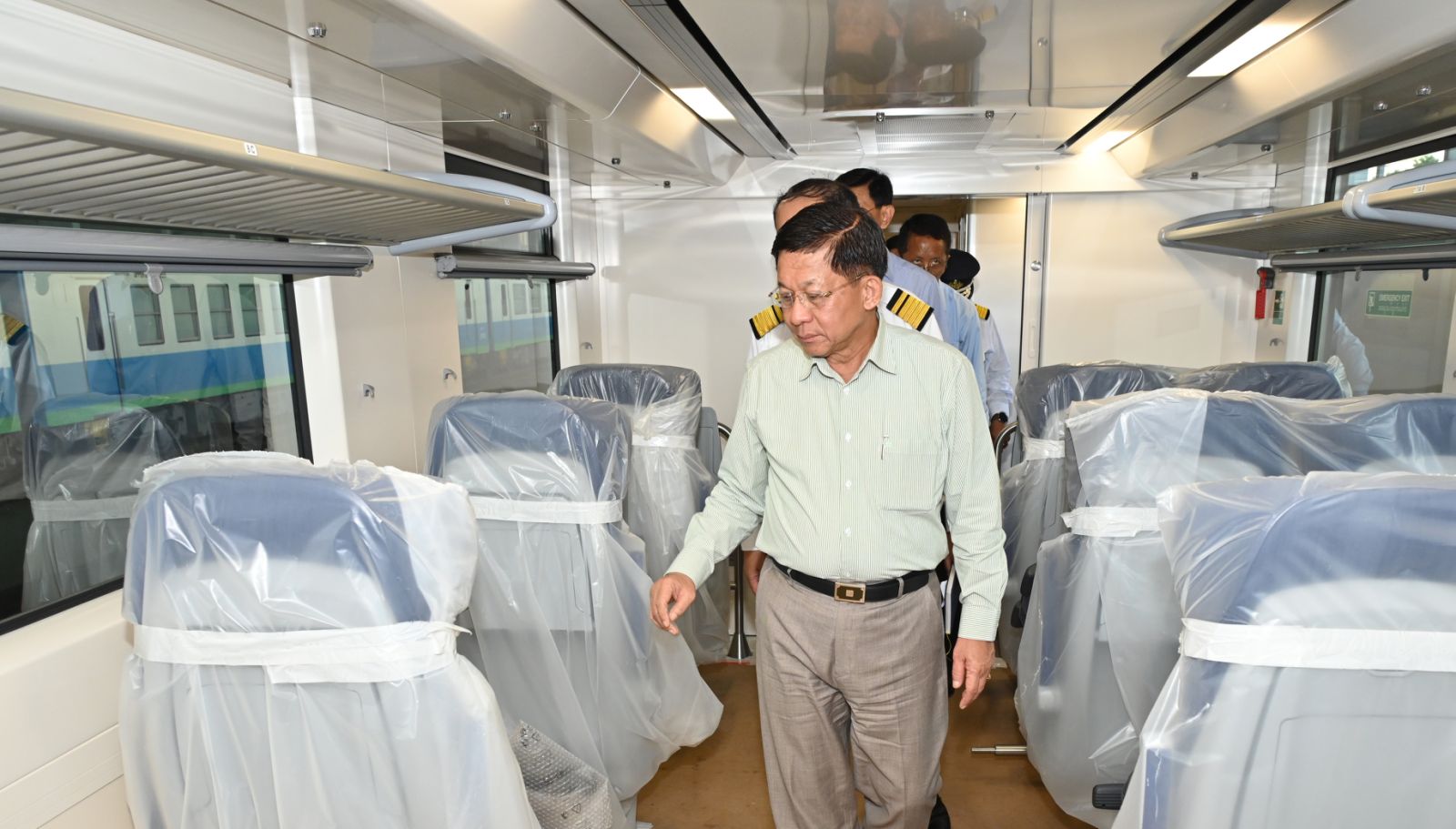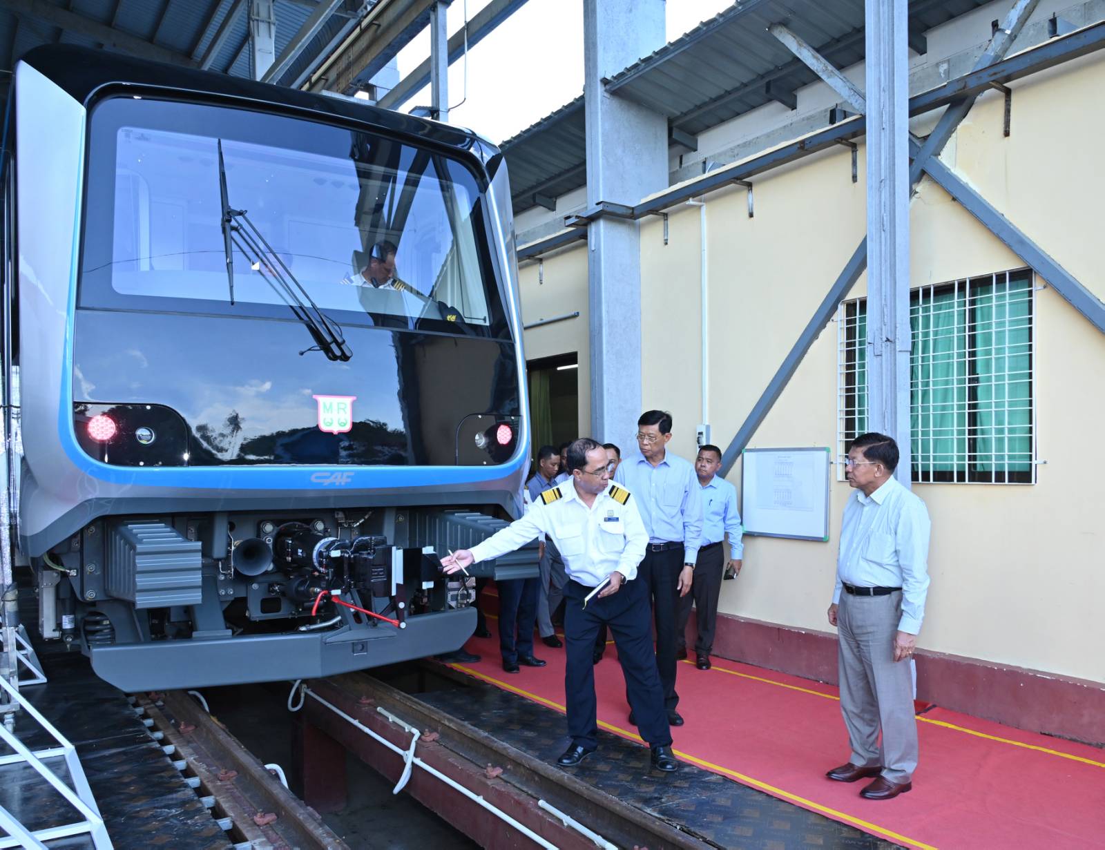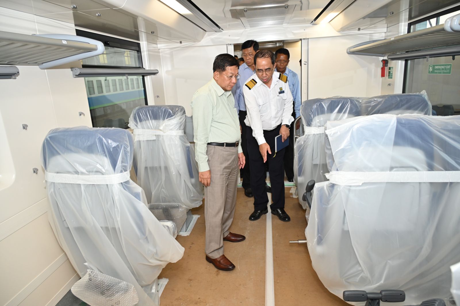 ထို့နောက် နိုင်ငံတော်စီမံအုပ်ချုပ်ရေးကောင်စီဥက္ကဋ္ဌ နိုင်ငံတော်ဝန်ကြီးချုပ်နှင့်အဖွဲ့ဝင်များသည် စပိန်နိုင်ငံမှ ရောက်ရှိလာသည့် DEMU ရထားတွဲဆိုင်းအသစ်များအား ကြည့်ရှုစစ်ဆေးကာ တာဝန်ရှိသူများ၏ ရှင်းလင်းတင်ပြမှုများအပေါ် လိုအပ်သည်များမှာကြားခဲ့ကြောင်း သတင်းရရှိသည်။