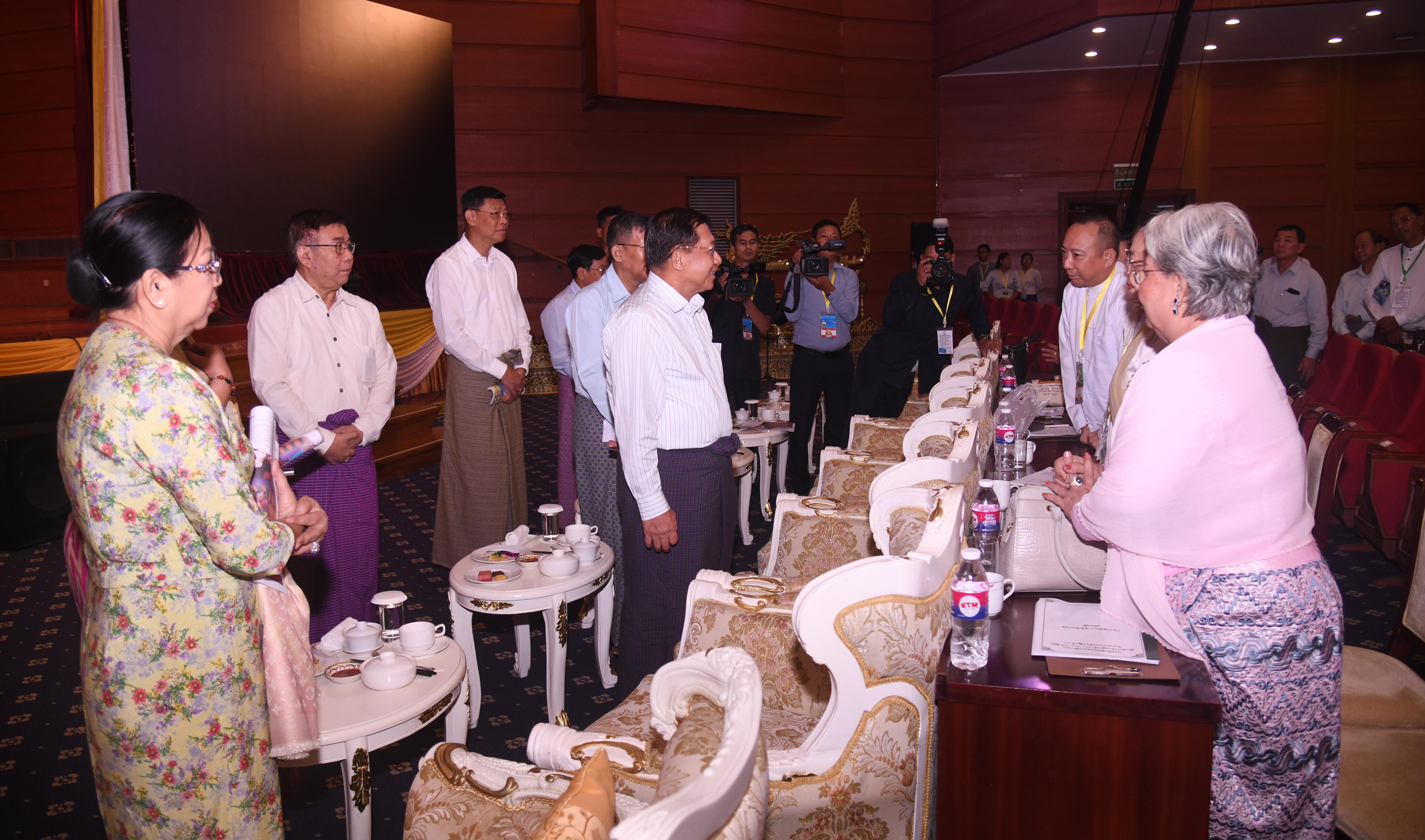 ယှဉ်ပြိုင်မှုအပြီးတွင် နိုင်ငံတော်စီမံအုပ်ချုပ်ရေးကောင်စီဥက္ကဋ္ဌ နိုင်ငံတော်ဝန်ကြီးချုပ်နှင့်ဇနီး တို့သည် ပြိုင်ပွဲအဆင့်အလိုက် အကဲဖြတ်ဆောင်ရွက်ပေးနေသည့် အကဲဖြတ်ပညာရှင်များနှင့် ပြိုင်ပွဲဝင်များအား ရင်းရင်းနှီးနှီး နှုတ်ဆက်သည်။