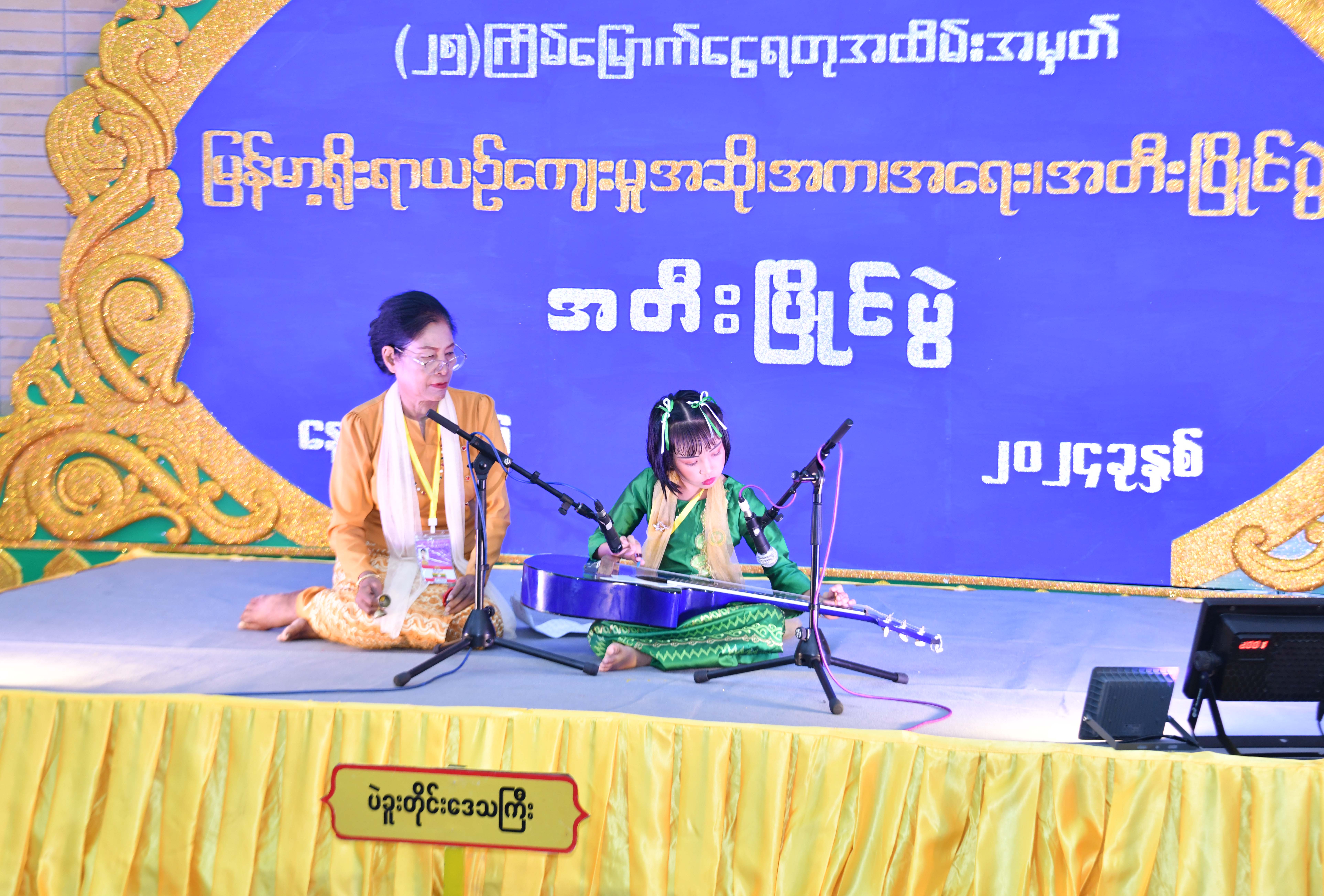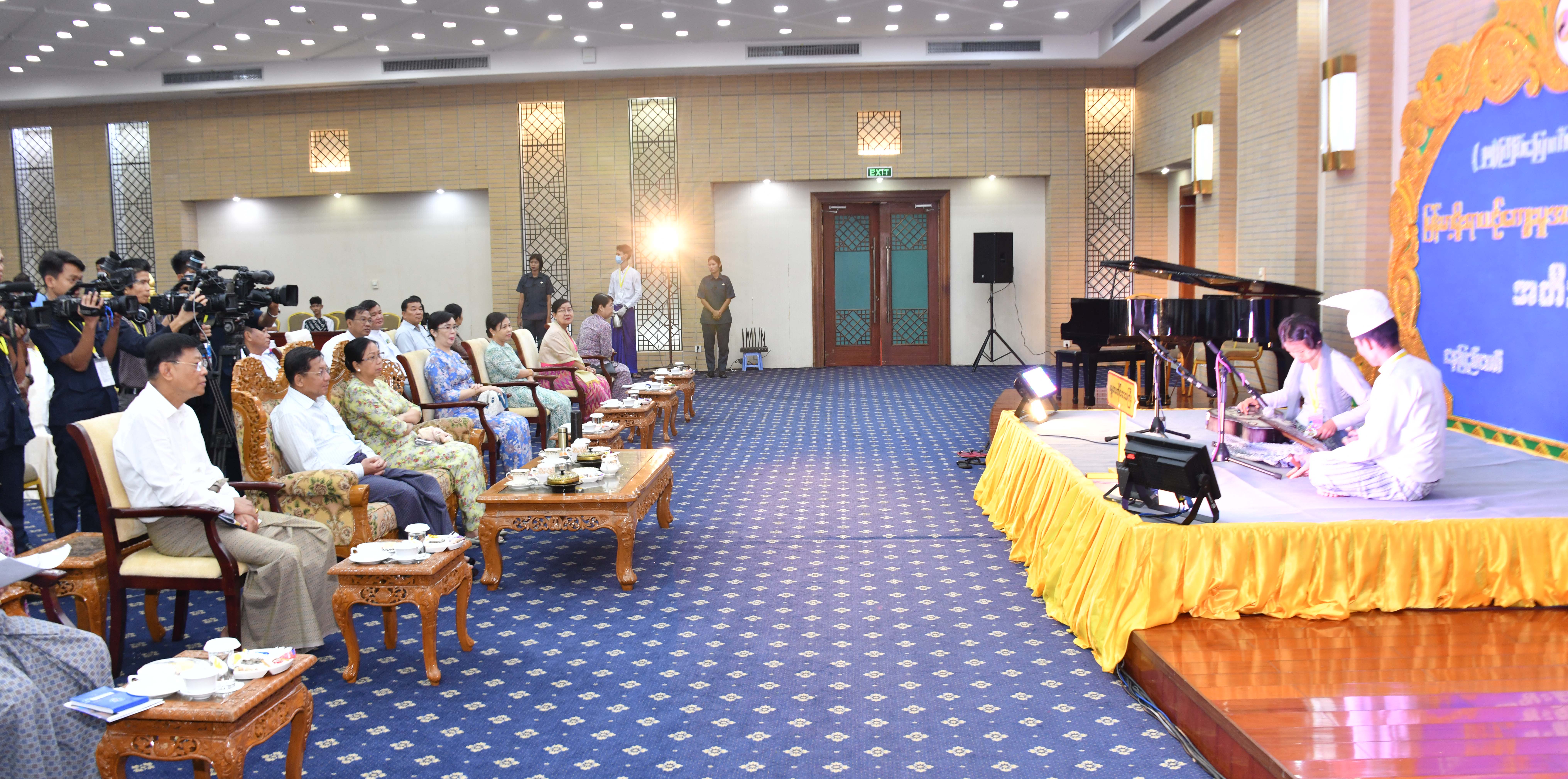 ထို့နောက် နိုင်ငံတော်စီမံအုပ်ချုပ်ရေးကောင်စီဥက္ကဋ္ဌ နိုင်ငံတော်ဝန်ကြီးချုပ်နှင့်ဇနီး နှင့်အဖွဲ့ဝင်များသည် မြန်မာအပြည်ပြည်ဆိုင်ရာကွန်ဗင်းရှင်းဗဟိုဌာန(၂) News Briefing Room ၌ ကျင်းပသည့် အခြေခံပညာအဆင့် အသက် ၁၀ နှစ်မှ ၁၅ နှစ်အတွင်း (အမျိုးသမီး)(ဂီတာ) အတီးပြိုင်ပွဲတွင် ပြိုင်ပွဲဝင်များက “ဝေဘာဂီရိ” (ကြိုး) သီချင်းအား သီချင်း၏ရသပေါ်လွင်စေပြီး နားဆင်သူများ နားဝင်ပီယံရှိစေရန် လက်စွမ်းပြ တီးခတ်ယှဉ်ပြိုင်နေမှုကို ကြည့်ရှုအားပေးကြသည်။
