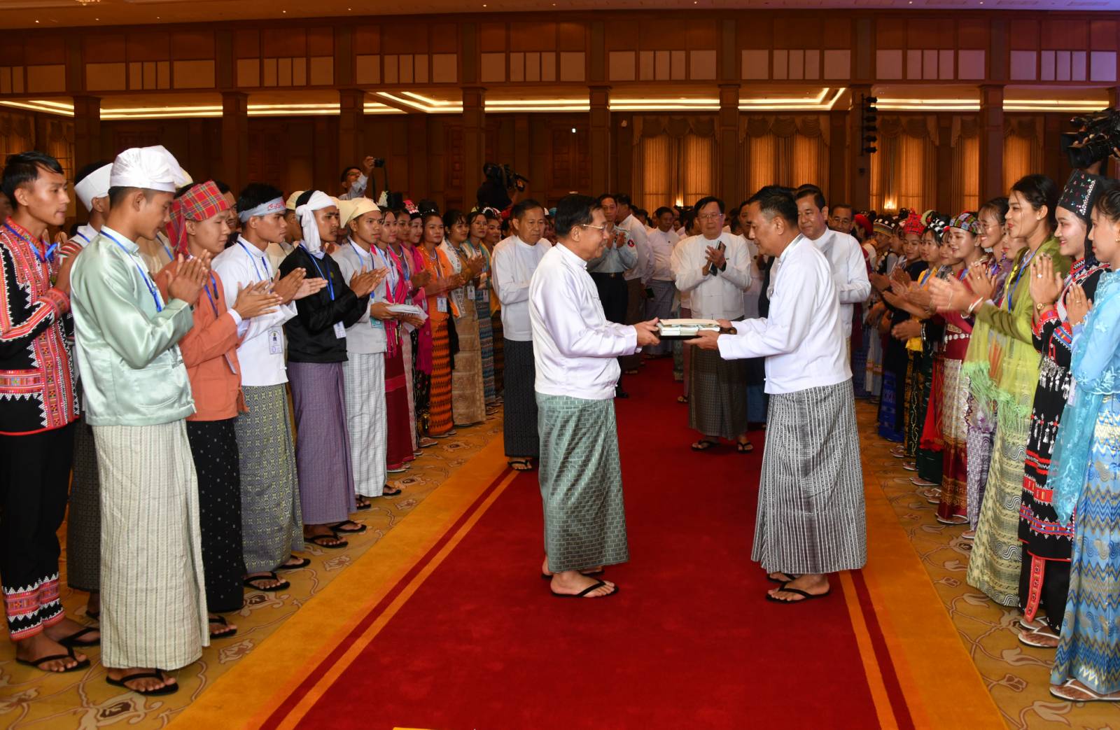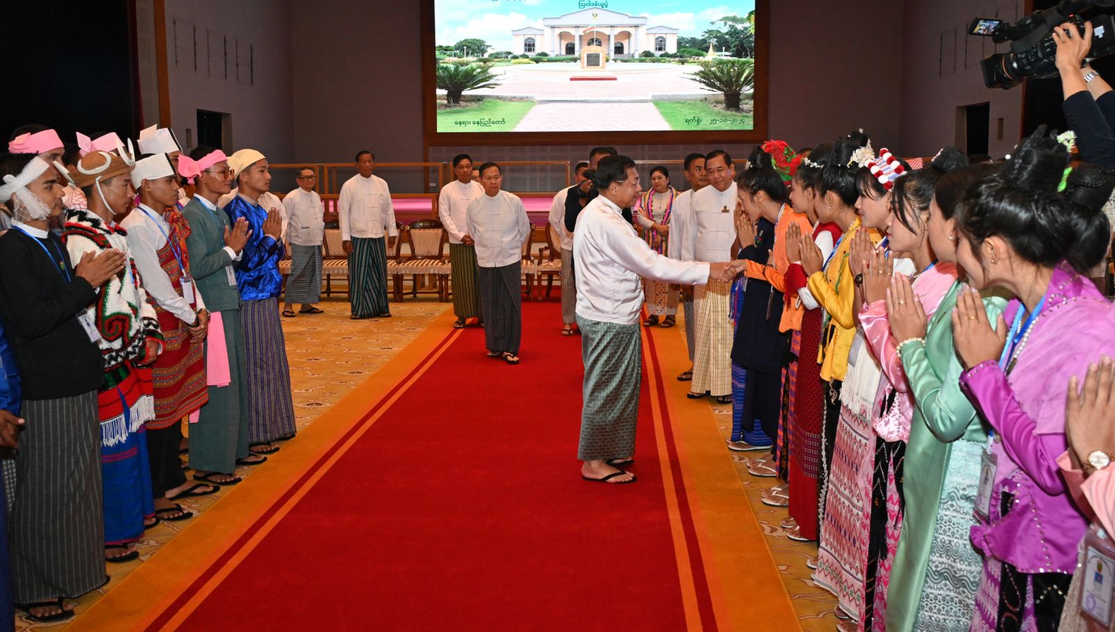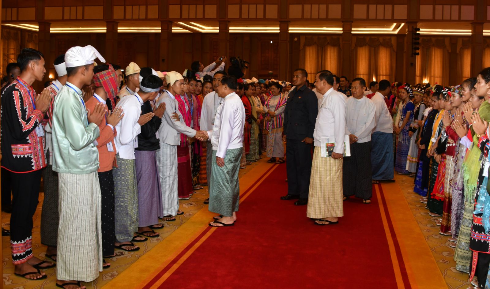 နိုင်ငံတော်စီမံအုပ်ချုပ်ရေးကောင်စီဥက္ကဋ္ဌ နိုင်ငံတော်ဝန်ကြီးချုပ် ဗိုလ်ချုပ်မှူးကြီး မင်းအောင်လှိုင် ပြည်ထောင်စုတိုင်းရင်းသားလူမျိုးများဖွံ့ဖြိုးရေးတက္ကသိုလ်ပညာရေးဘွဲ့ ၅ နှစ်သင်တန်း အမှတ်စဉ် (၆) မှ ကျောင်းသား၊ ကျောင်းသူများကို တွေ့ဆုံအမှာစကားပြောကြား