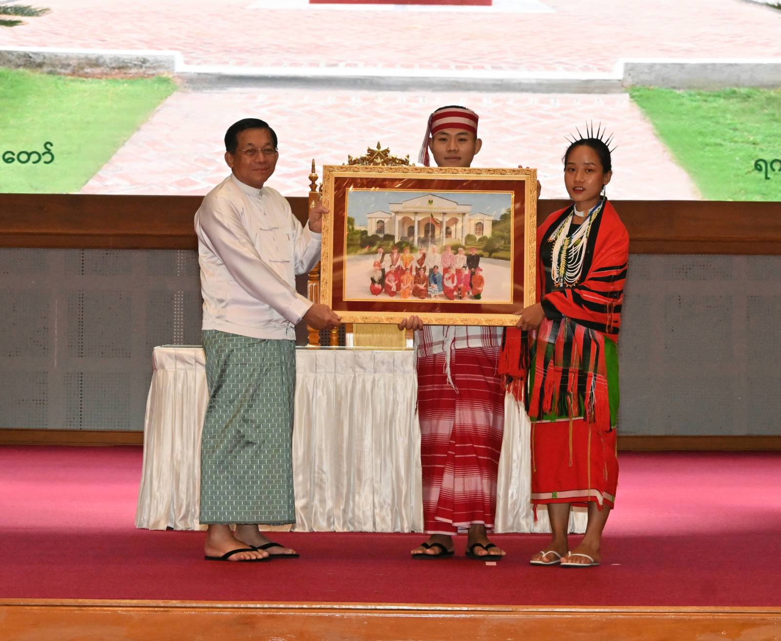 ထို့နောက် နိုင်ငံတော်စီမံအုပ်ချုပ်ရေးကောင်စီဥက္ကဋ္ဌ နိုင်ငံတော်ဝန်ကြီးချုပ်နှင့် အခမ်းအနားတက်ရောက်လာကြသူများ၊ ကျောင်းသား၊ ကျောင်းသူများသည် စုပေါင်းမှတ်တမ်းတင်ဓာတ်ပုံရိုက်ကြသည်။ ၎င်းနောက် နိုင်ငံတော်စီမံအုပ်ချုပ်ရေးကောင်စီဥက္ကဋ္ဌ နိုင်ငံတော်ဝန်ကြီးချုပ်က ကျောင်းသား၊ ကျောင်းသူများကို တစ်ဦးချင်း ရင်းရင်းနှီးနှီး လိုက်လံမေးမြန်းနှုတ်ဆက်အားပေးခဲ့ပြီး ကျောင်းသား၊ ကျောင်းသူများအတွက် ဂုဏ်ပြုချီးမြှင့်ငွေများကို ပေးအပ်ရာ တာဝန်ရှိသူတစ်ဦးက လက်ခံရယူခဲ့ကြောင်း သတင်းရရှိသည်။