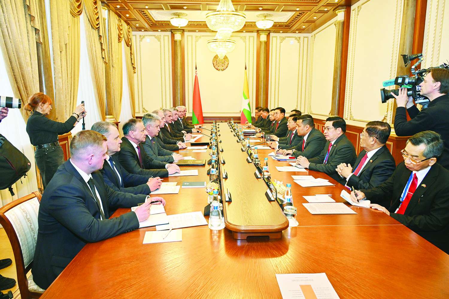 နိုင်ငံတော်စီမံအုပ်ချုပ်ရေးကောင်စီဥက္ကဋ္ဌ နိုင်ငံတော်ဝန်ကြီးချုပ် ဗိုလ်ချုပ်မှူးကြီးမင်းအောင်လှိုင် ဘယ်လာရုစ်သမ္မတနိုင်ငံ အမျိုးသားလွှတ်တော်ဥက္ကဋ္ဌ H.E. Mr. Igor Petrovich Sergeenko နှင့် တွေ့ဆုံဆွေးနွေး