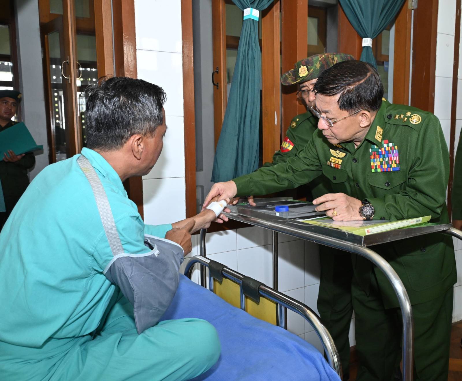 ယင်းနောက် နိုင်ငံတော်စီမံအုပ်ချုပ်ရေးကောင်စီဥက္ကဋ္ဌ တပ်မတော်ကာကွယ်ရေးဦးစီးချုပ်နှင့်အဖွဲ့ဝင်များသည် ဆေးရုံတက်ရောက်ကုသမှုခံယူလျက်ရှိသည့် အရာရှိ၊ စစ်သည်များအား ဂုဏ်ပြုချီးမြှင့်ငွေနှင့် လက်ဆောင်ပစ္စည်းများ ပေးအပ်သည်။