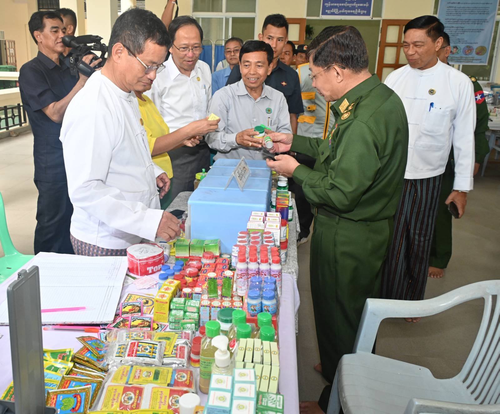 ၎င်းနောက် နိုင်ငံတော်စီမံအုပ်ချုပ်ရေးကောင်စီဥက္ကဋ္ဌ တပ်မတော်ကာကွယ်ရေးဦးစီးချုပ်နှင့် အဖွဲ့ဝင်များသည် ရေဘေးသင့်ပြည်သူများအတွက် ကျန်းမာရေးဝန်ကြီးဌာနမှ ကျန်းမာရေးစောင့်ရှောက်မှု ဆေးခန်းဖွင့်လှစ်၍ ဆောင်ရွက်ပေးထားမှုများကို ကြည့်ရှုစစ်ဆေးပြီး တာဝန်ခံများ၏ တင်ပြချက်များအပေါ် လိုအပ်သည်များ မှာကြားသည်။