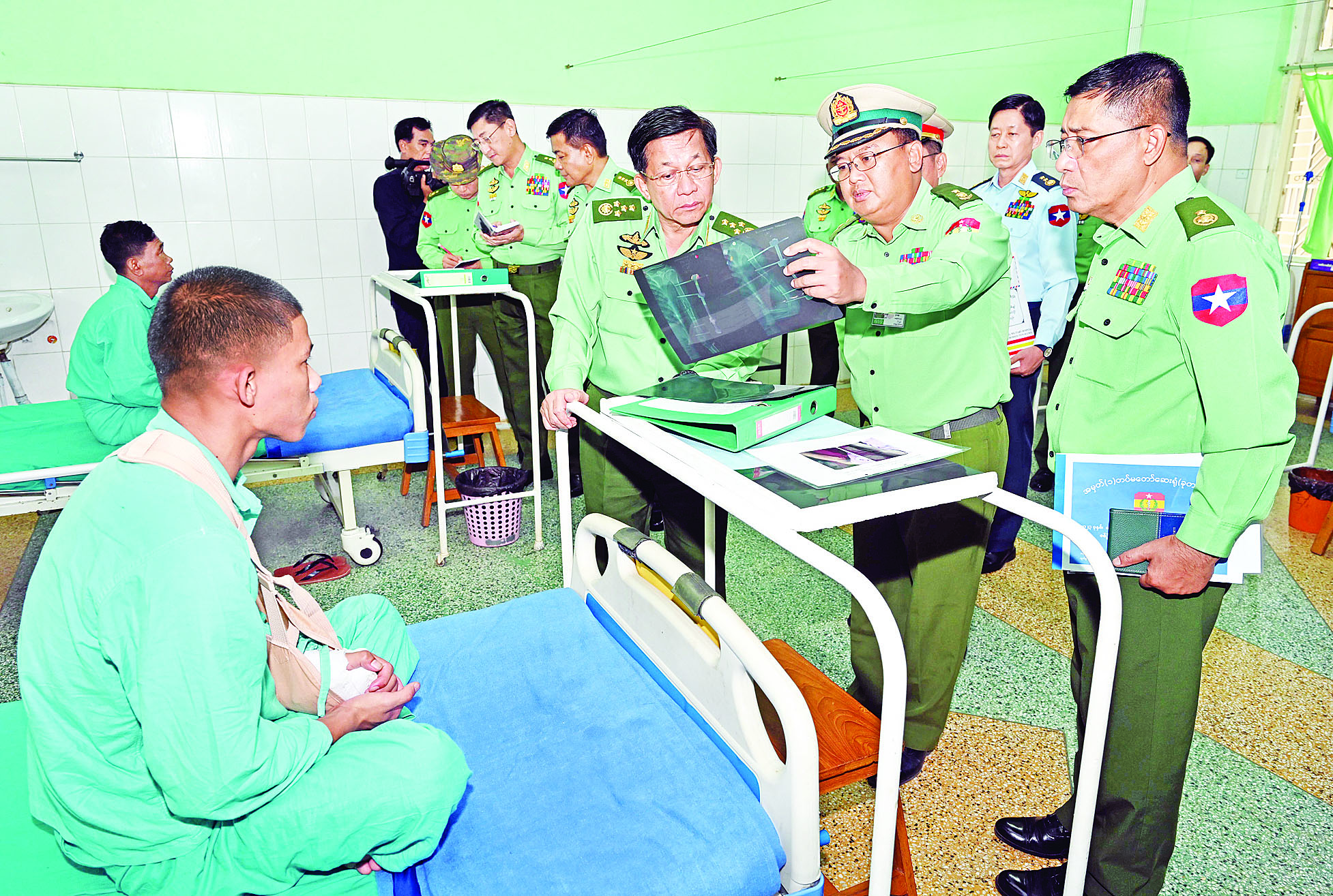 စက်တင်ဘာ ၂၃ ရက် မွန်းလွဲပိုင်းတွင် နိုင်ငံတော်စီမံအုပ်ချုပ်ရေးကောင်စီဥက္ကဋ္ဌ တပ်မတော်ကာကွယ်ရေးဦးစီးချုပ်နှင့် အဖွဲ့ဝင်များသည် ပြင်ဦးလွင်မြို့ရှိ နယ်မြေခံတပ်မတော်ဆေးရုံသို့ ရောက်ရှိကြပြီး နိုင်ငံတော်တည်ငြိမ်ရေး၊ လုံခြုံရေးနှင့် တရားဥပဒေစိုးမိုးရေး တာဝန်များကို ထမ်းဆောင်စဉ် ထိခိုက်ဒဏ်ရာရရှိခဲ့သည့် အရာရှိ၊ စစ်သည်များအား တစ်ဦးချင်း၏ ထိခိုက်ဒဏ်ရာရရှိမှု၊ ဆေးကုသပေးထားမှုများကို ရင်းရင်းနှီးနှီး မေးမြန်းအားပေးစကားပြောကြားကာ ၎င်းတို့၏ တင်ပြချက်များအပေါ် လိုအပ်သည်များ ဖြည့်ဆည်းဆောင်ရွက်ပေးပြီး စားသောက်ဖွယ်ရာများ ပေးအပ်သည်။