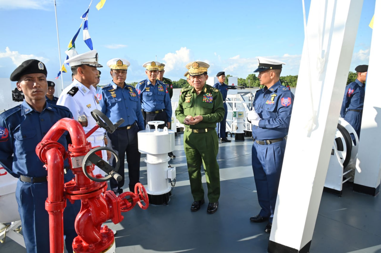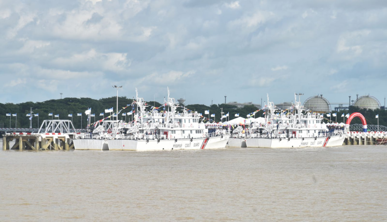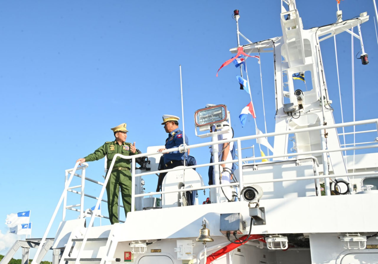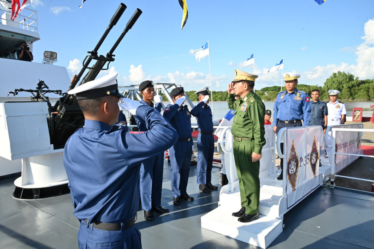 ပြည်ထောင်စုသမ္မတမြန်မာနိုင်ငံတော် ကမ်းခြေစောင့်တပ်ဖွဲ့ကွပ်ကဲမှုဌာနချုပ် တည်ထောင်ခြင်း (၃) နှစ်ပြည့် နှစ်ပတ်လည်နေ့အထိမ်းအမှတ်နှင့် ရေကြောင်းဆိုင်ရာ အကျိုးစီးပွားများနှင့် မြန်မာ့ပင်လယ်ကမ်းရိုးတန်းလုံခြုံရေးအား ကာကွယ်စောင့်ရှောက်ရန်အတွက် ၄၈ မီတာ အမြန်သွားကင်းလှည့်ရေယာဉ် (၄) စီး တပ်တော်ဝင်ခြင်းအခမ်းအနားကို ယနေ့မွန်းလွဲပိုင်းတွင် အမှတ် (၃) ရေတပ်ဆိပ်ခံတံတား (သီလဝါ) ၌ ကျင်းပပြုလုပ်ရာ နိုင်ငံတော်စီမံအုပ်ချုပ်ရေးကောင်စီဥက္ကဋ္ဌ တပ်မတော်ကာကွယ်ရေးဦးစီးချုပ် ဗိုလ်ချုပ်မှူးကြီး မင်းအောင်လှိုင် တက်ရောက်ဂုဏ်ပြုအမှာစကားပြောကြားသည်။