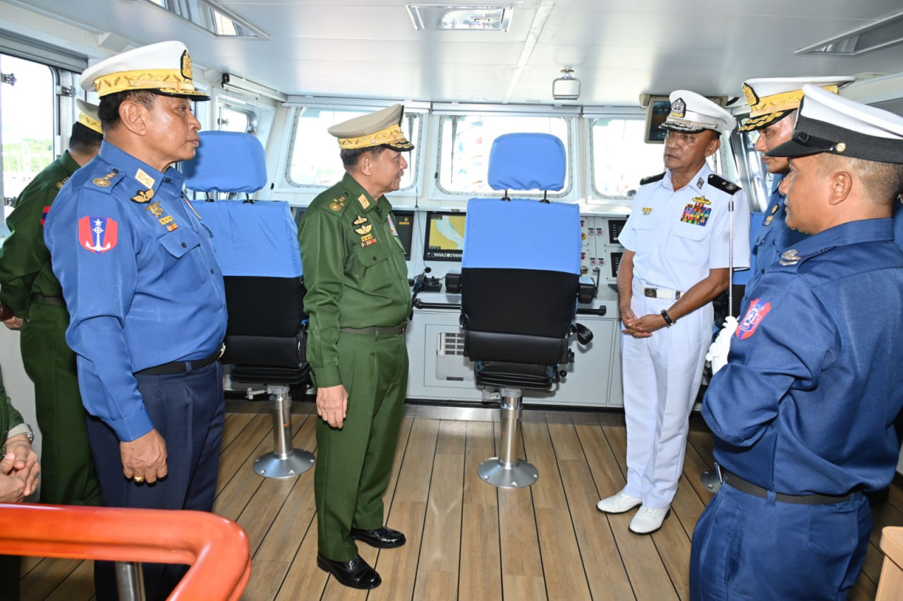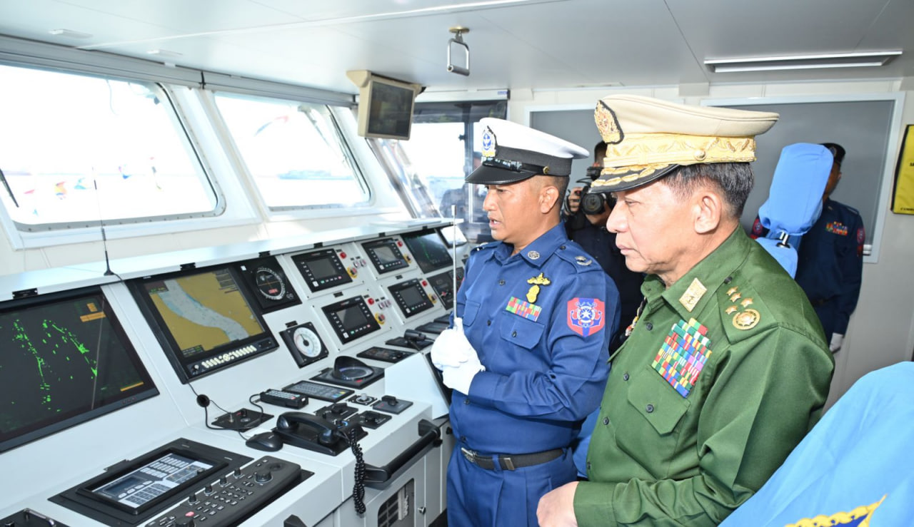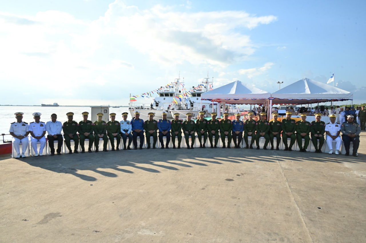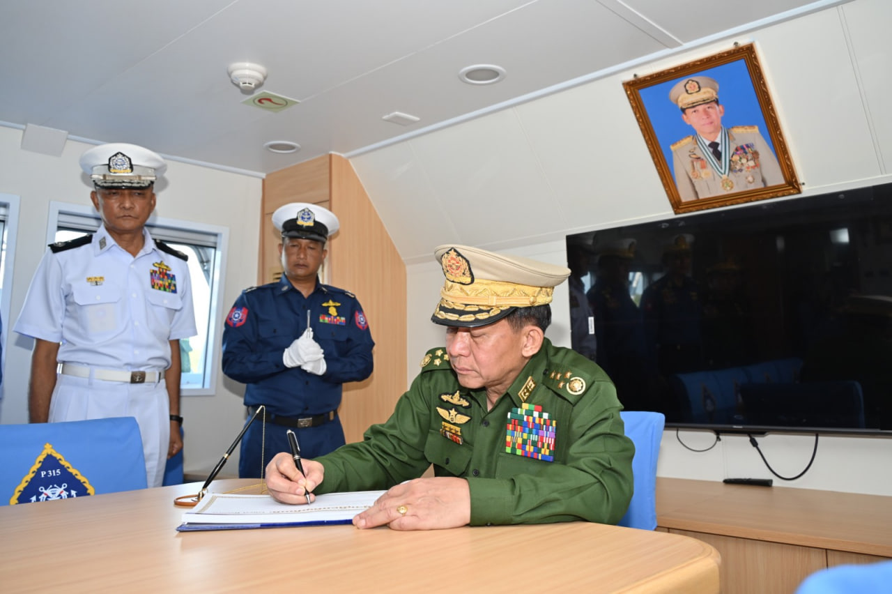 ပြည်ထောင်စုသမ္မတမြန်မာနိုင်ငံတော် ကမ်းခြေစောင့်တပ်ဖွဲ့ကွပ်ကဲမှုဌာနချုပ် တည်ထောင်ခြင်း (၃) နှစ်ပြည့် နှစ်ပတ်လည်နေ့အထိမ်းအမှတ်နှင့် ရေကြောင်းဆိုင်ရာ အကျိုးစီးပွားများနှင့် မြန်မာ့ပင်လယ်ကမ်းရိုးတန်းလုံခြုံရေးအား ကာကွယ်စောင့်ရှောက်ရန်အတွက် ၄၈ မီတာ အမြန်သွားကင်းလှည့်ရေယာဉ် (၄) စီး တပ်တော်ဝင်ခြင်းအခမ်းအနားကို ယနေ့မွန်းလွဲပိုင်းတွင် အမှတ် (၃) ရေတပ်ဆိပ်ခံတံတား (သီလဝါ) ၌ ကျင်းပပြုလုပ်ရာ နိုင်ငံတော်စီမံအုပ်ချုပ်ရေးကောင်စီဥက္ကဋ္ဌ တပ်မတော်ကာကွယ်ရေးဦးစီးချုပ် ဗိုလ်ချုပ်မှူးကြီး မင်းအောင်လှိုင် တက်ရောက်ဂုဏ်ပြုအမှာစကားပြောကြားသည်။